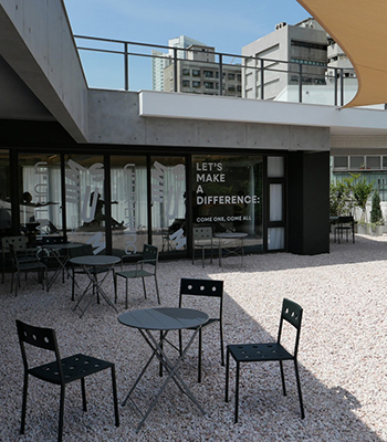 本案坐落於市區鬧中取靜的社區住宅一樓。辦公室前方的一座公園,綠意盎然、風和日暖,流水潺潺之間,如自然書寫的田園詩。陽光映射下產生的樹蔭將自然的詩篇引入,室外的風與影自然地融合於室內。呼應環保的永續精神,更是珍惜眼前自然的美,設計師期望減少塑料產品的使用,也揉合工業風格和就近的綠意環境。以光影和虛實變化作為最主要的裝飾與設計。