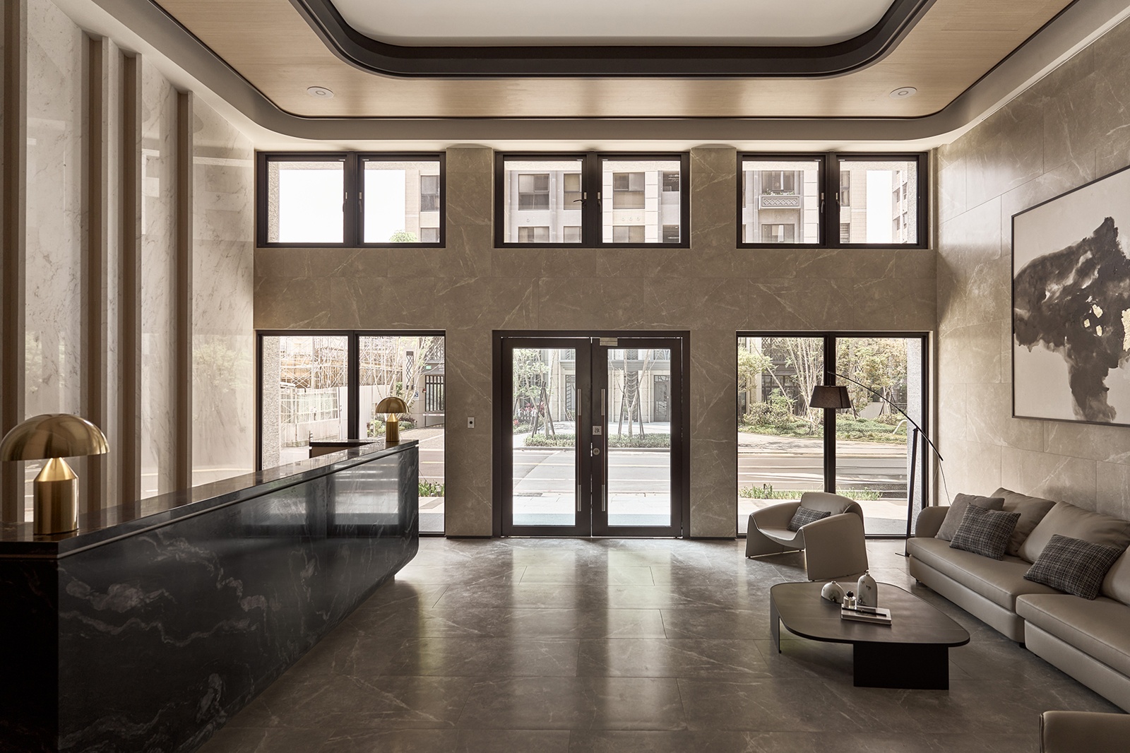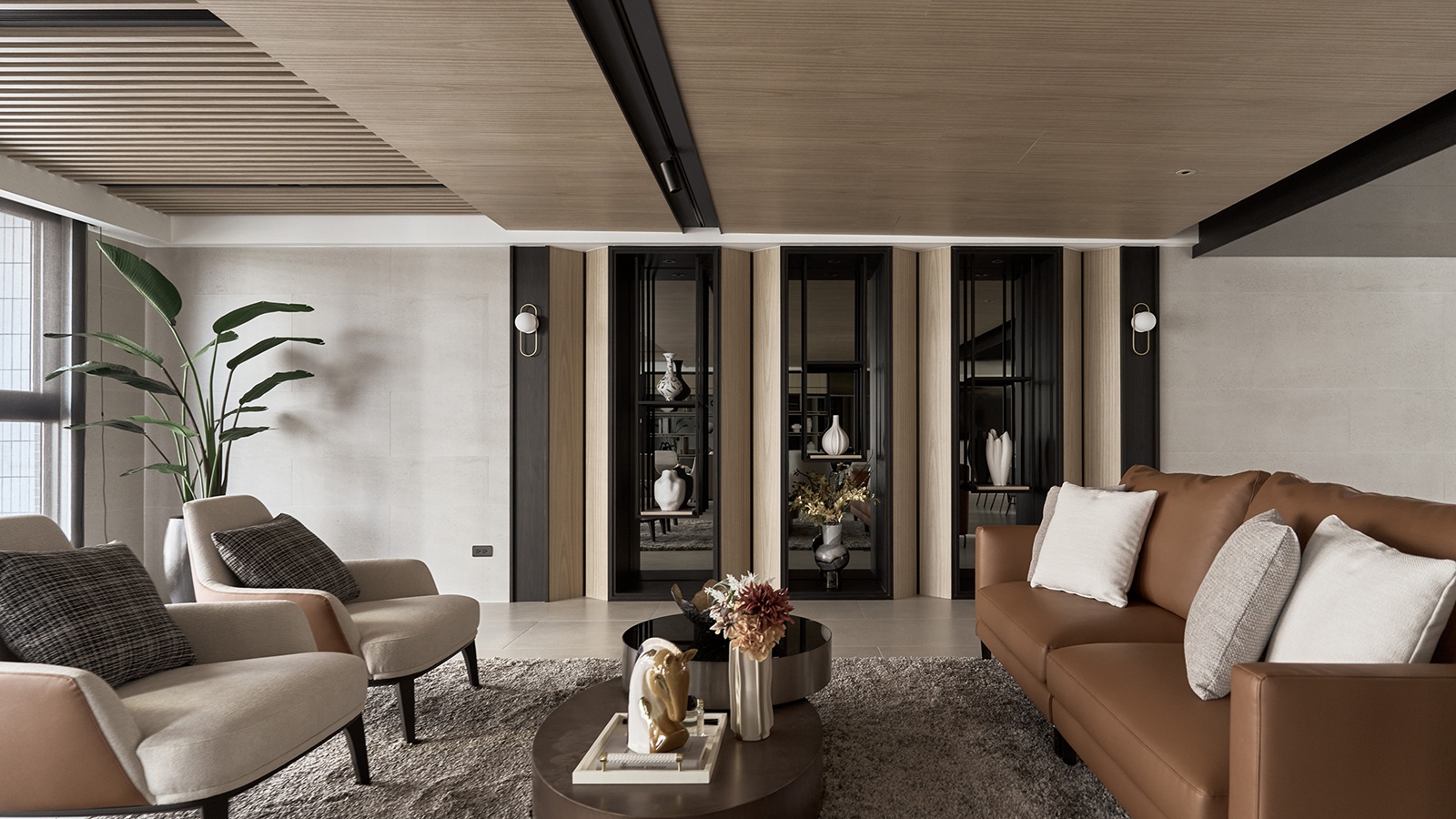 本案為住宅大樓公設空間規劃案,設計涵蓋接待大廳、多功能室、健身房等區域,是以揉合簡約輕奢、自然與藝術作為設計主軸。先是以天然木作、石材、格柵與幾何元素,創造豐富層次,再利用落地窗引光入室,形塑敞亮的空間感,旨在為住戶提供自由、舒適且飽含溫度的共享空間,提升其生活品質與歸屬感。