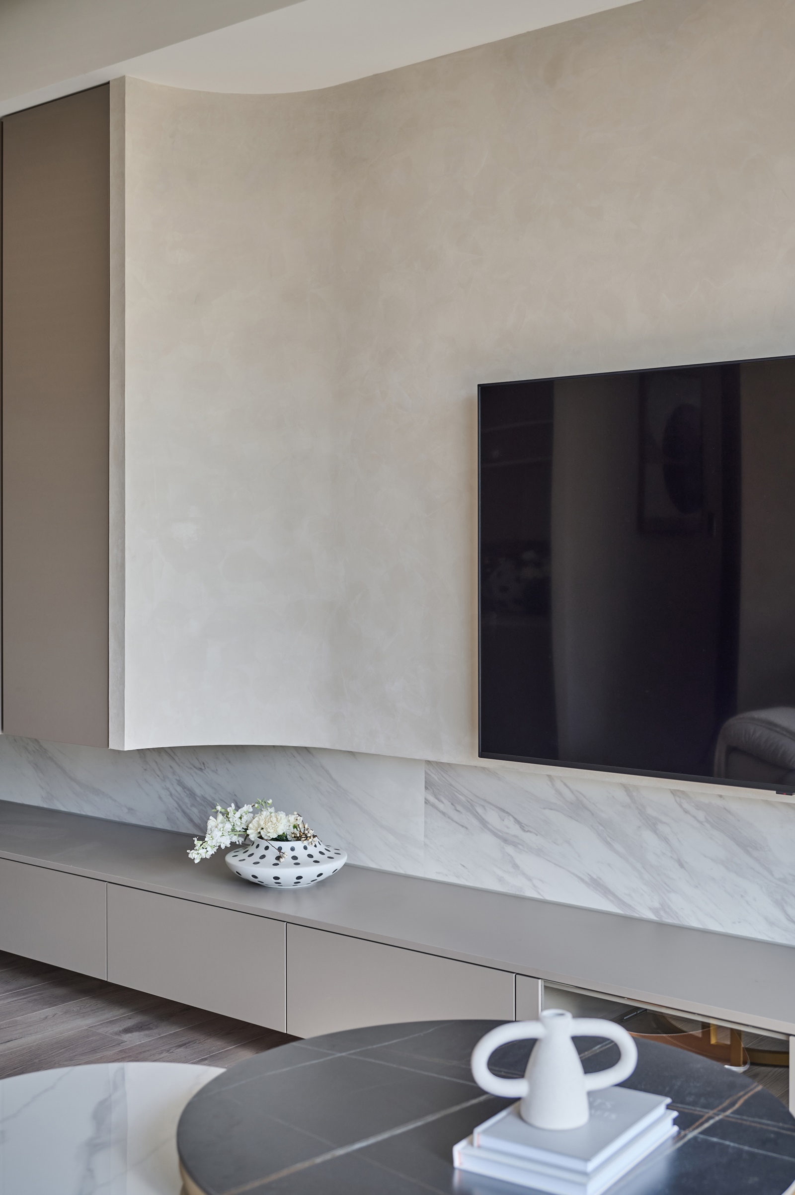 本案為住宅空間規劃案。考量到業主一家是從透天住宅搬入僅有21坪(69 square meters)的平面式住宅,因此如何滿足一家人的收納需求又不影響整體的美觀便成了此次設計的重點之一。為此,團隊善用壁櫃設計將收納機能整合進空間,並減去不必要的裝飾,以此塑造簡約俐落的視覺感受。而美觀與實用兼具的隱藏式收納櫃設計,也讓忙碌的雙薪家庭能更便於打理住所,進而享受愜意放鬆的日常生活。