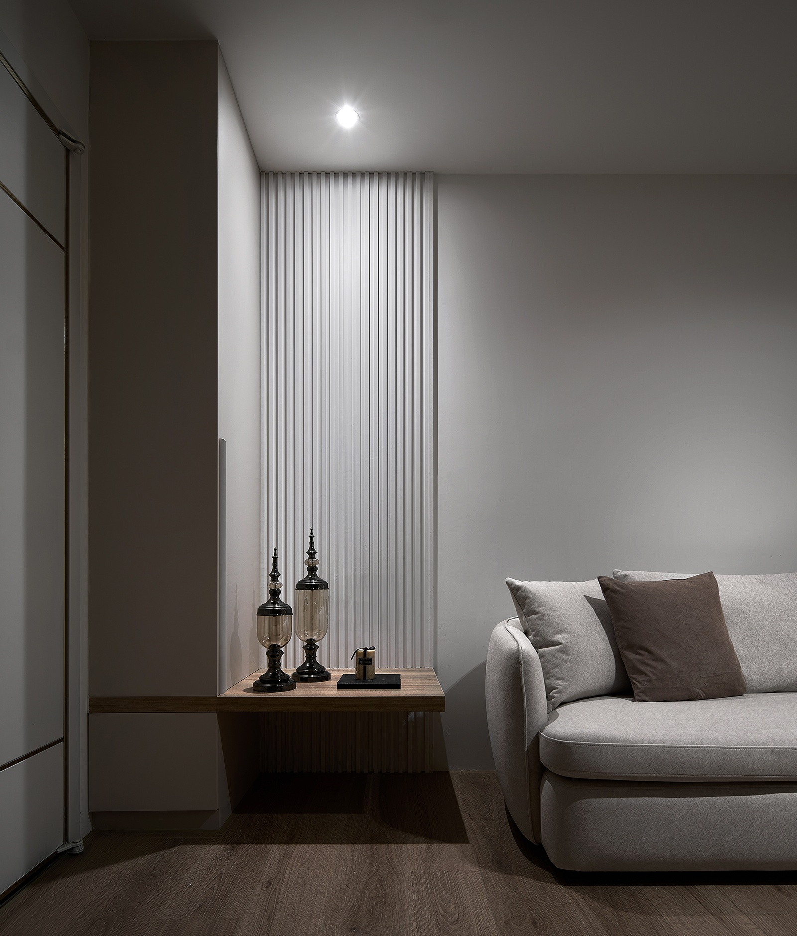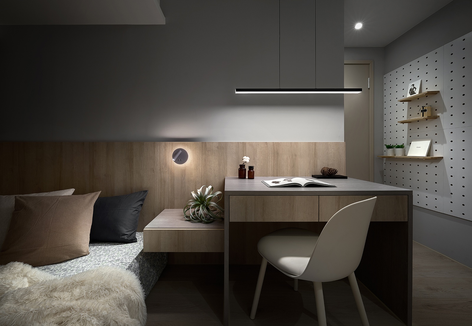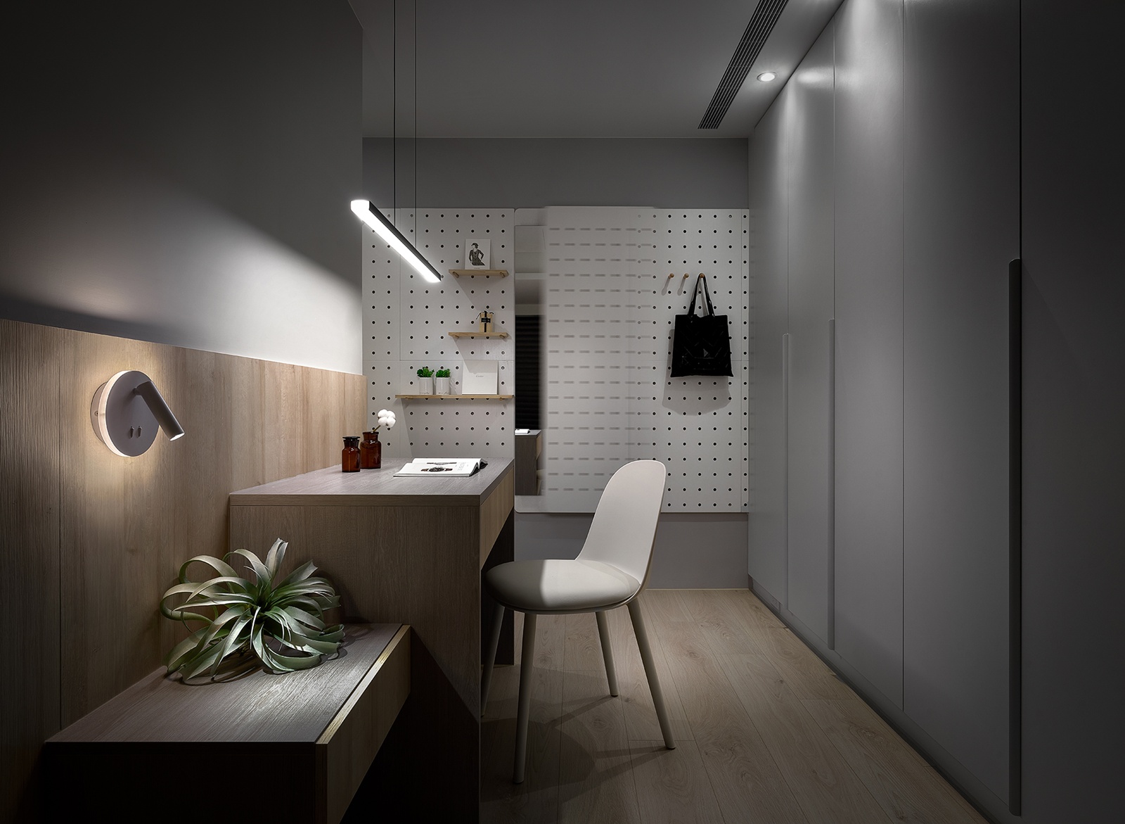 此次住宅設計除了追求美觀與實用性之外,也十分重視環保與永續。建材方面,團隊便有選用低VOC的環保礦物塗料,以及防火、防潮、可回收、耐震、隔音的矽酸鈣板和防潮石膏磚,能有效提升住宅的美感、耐用性與安全性。此外,全室配置的照明設備也皆為省電的LED燈,可大幅降低電力消耗,達到節能減碳的效果。