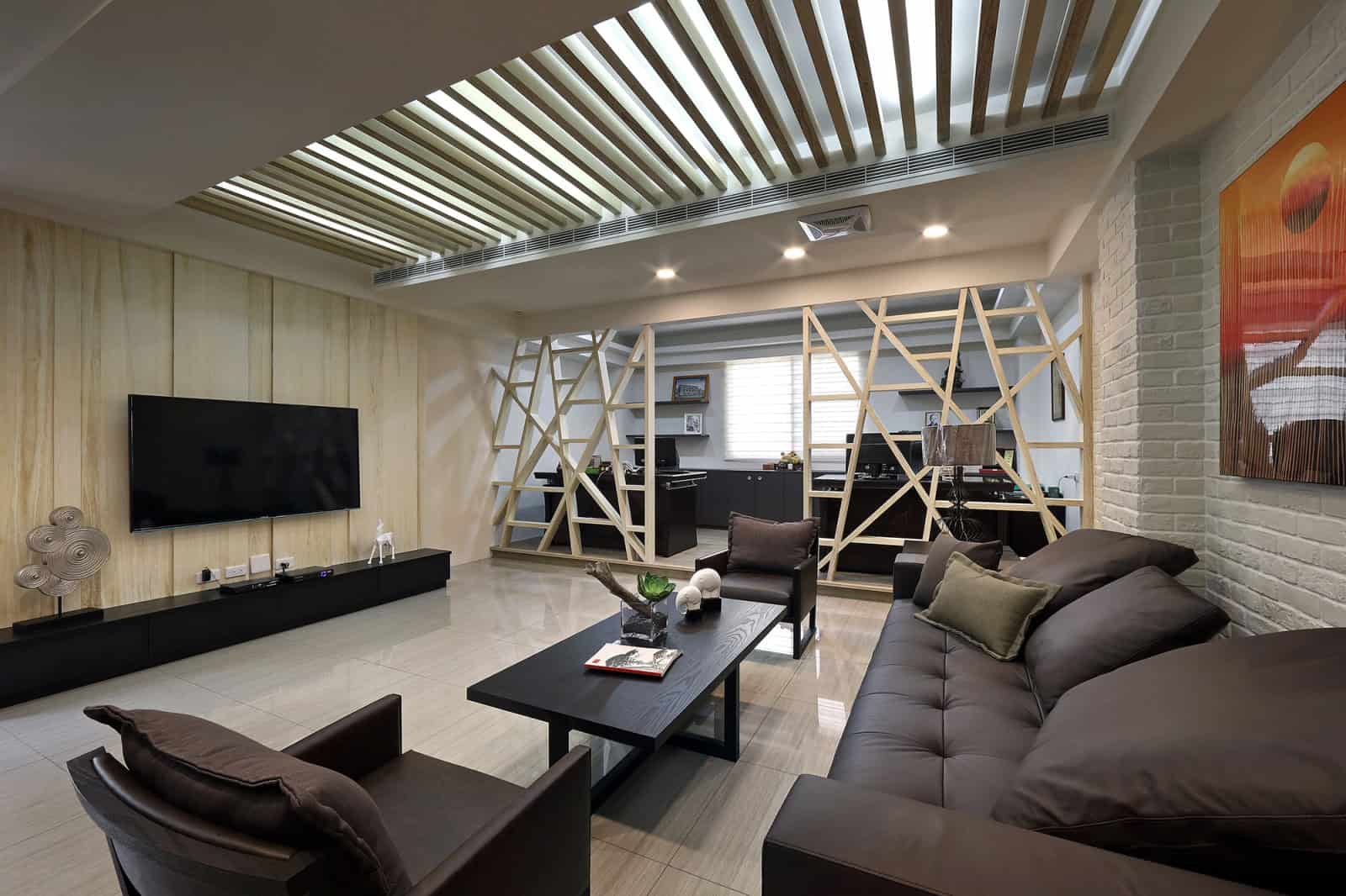 向內走至工作區,團隊選擇以白光作為此處的主要燈源,藉此創造明亮、舒適的辦公環境。另外,由於本案尤為重視機能區的獨立性,因此不論是諮詢區、多功能辦公區抑或是會談室,皆有規劃鏤空隔屏或實體牆,冀望以此讓員工沉浸工作、提升辦公效率。值得一提的是,在多功能辦公區的天花板上,團隊巧妙運用格柵結合燈具,使其產生如同自然光穿越天井格柵灑落而下的視覺效果。