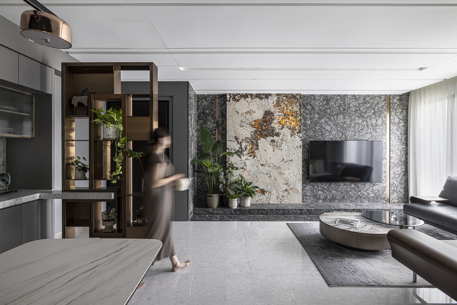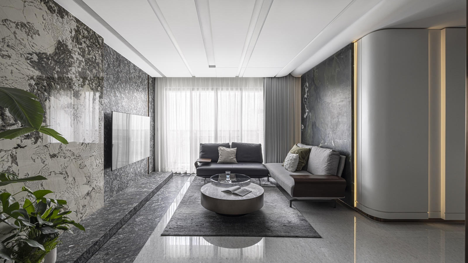 本案為33坪(109 square meters)住宅規劃案。為提升整體的質感與舒適度,團隊特別著重光線的引導和材料的應用。從採取無隔間設計、圓弧元素,再到運用多種石紋材料,不僅能使空間動線寬闊、流暢,還能形塑出簡潔俐落又蘊含層次的視覺意象,為居者創造兼具機能、美學的生活環境。