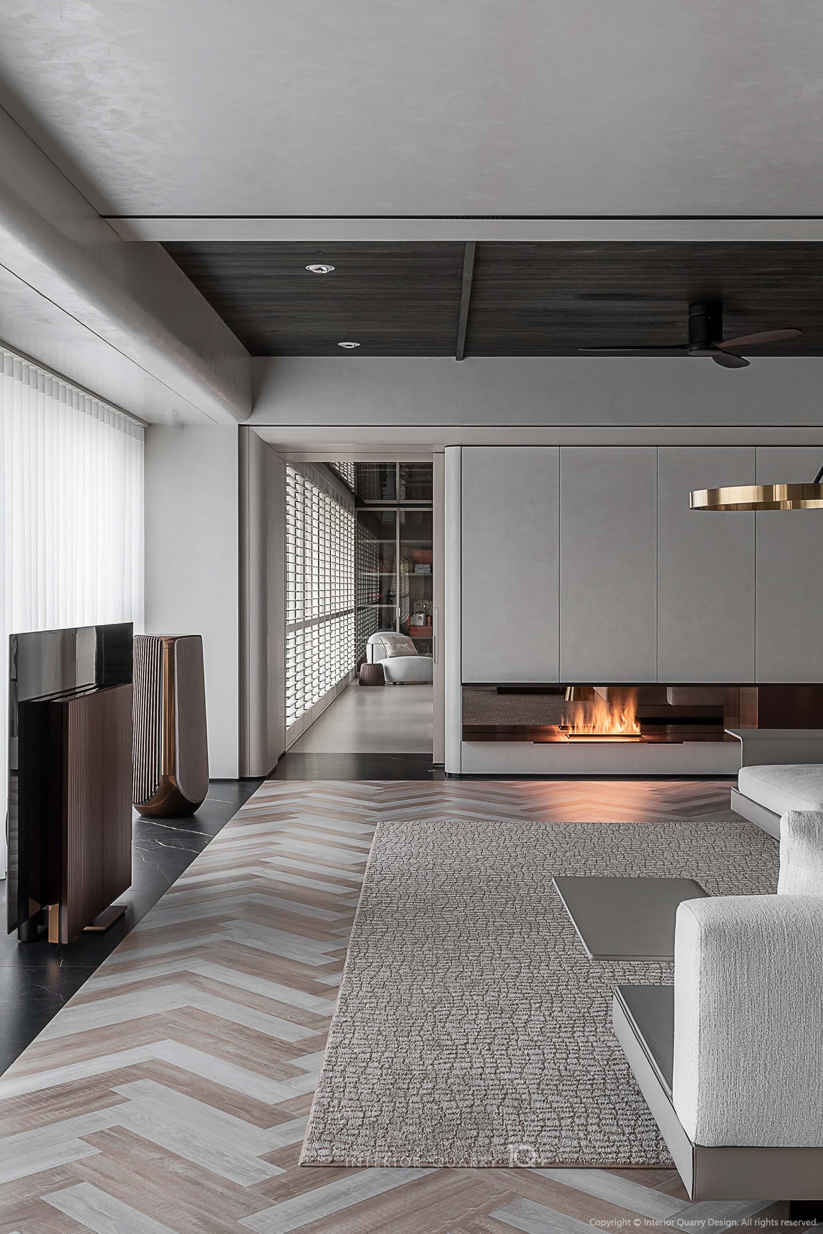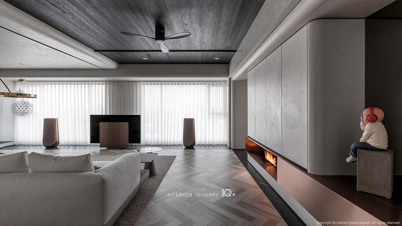 本案採用木質、藝術水泥與彩紋漆作為空間主軸,並以金屬、鏡面及圓弧造型元素點綴其中,築構出簡約時尚的質感都會宅。其中廊道透過獨具匠心的設計,創造出能孕育不同空間調性的「光廊」。在設計師的精心擘劃之下,妥善地規劃出空間格局與動線走向。藉此,讓男、女屋主擁有各自的更衣室與穿鞋間,以及諸多收納空間,滿足儲物需求。綜上所述,打造出屋主心目中理想的住宅空間。