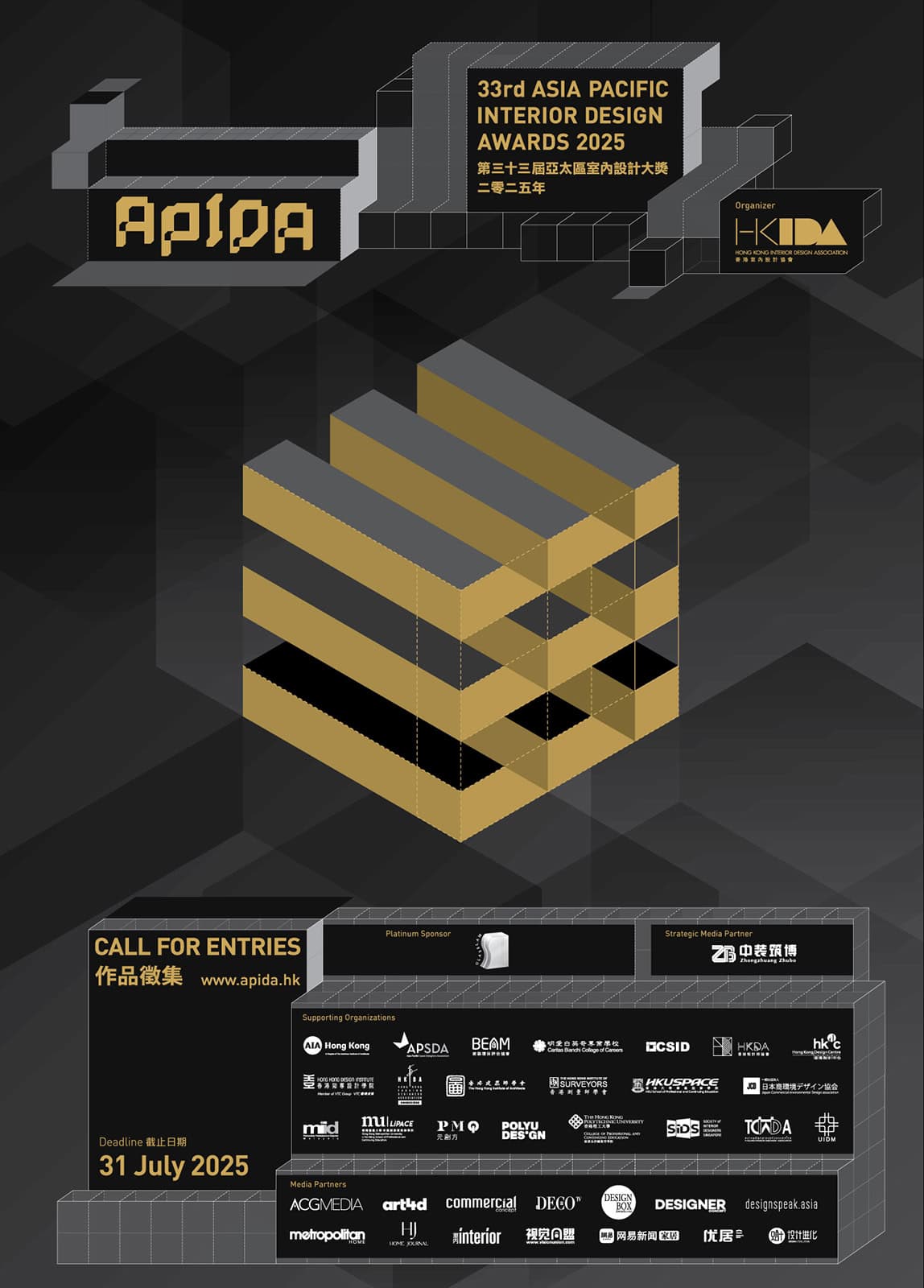 誠摯邀請您參加 2025 年第 33 届亞太室內設計大獎(APIDA)。該獎項現在向過去 2 年內在世界各地完成項目的設計工程個人和團隊開放。