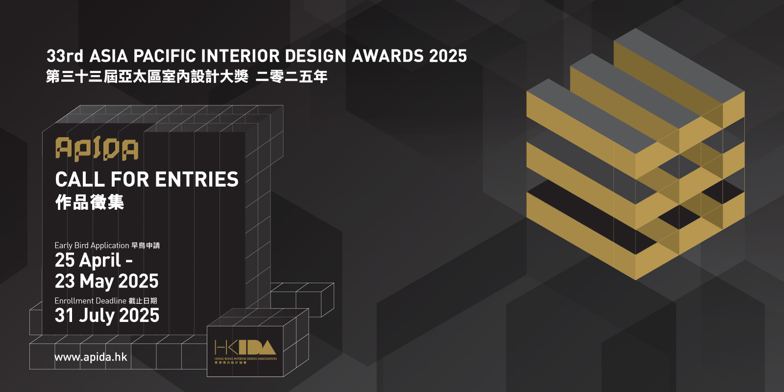 誠摯邀請您參加 2025 年第 33 届亞太室內設計大獎(APIDA)。該獎項現在向過去 2 年內在世界各地完成項目的設計工程個人和團隊開放。