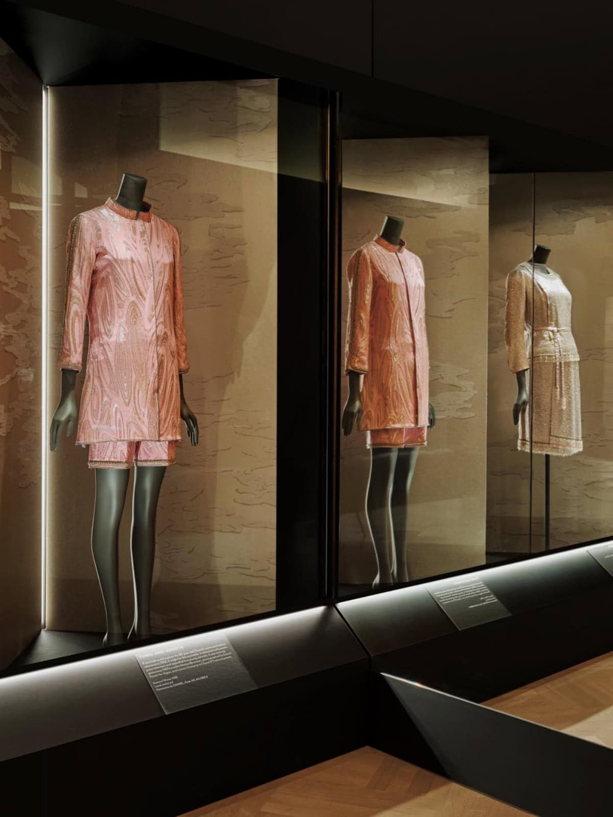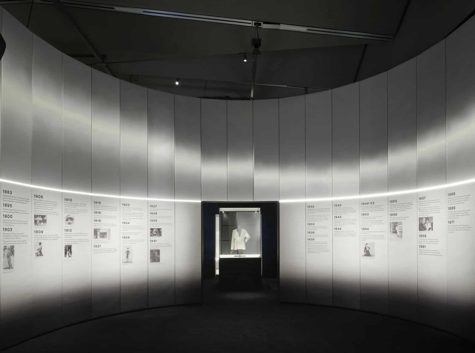 Gabrielle Chanel。《時尚宣言》是英國首個以加布里埃爾「可可」·香奈兒作品為主題的展覽,講述香奈兒品牌的創立歷程與其標誌性設計風格的演變。燈光設計成為關鍵元素,使觀眾能夠在低照度保護下細緻欣賞展品的細節、輪廓、紋理與材質,同時營造出一個層次分明、明亮且優雅的展覽氛圍。