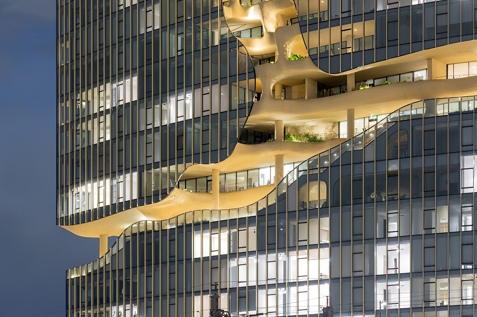 Here, architecture is no longer just shelter — it becomes a vertical community that interacts with its surroundings. The building acts as an extension of the natural world, positioning residents’ daily lives at the threshold between city and nature. Morning light streaming through the glass façade and the evening breeze drifting along the fissure offer moments of calm and freedom, allowing people to find inner peace amid concrete and steel. This is more than an apartment building; it is an experiment in the symbiosis of city and nature.