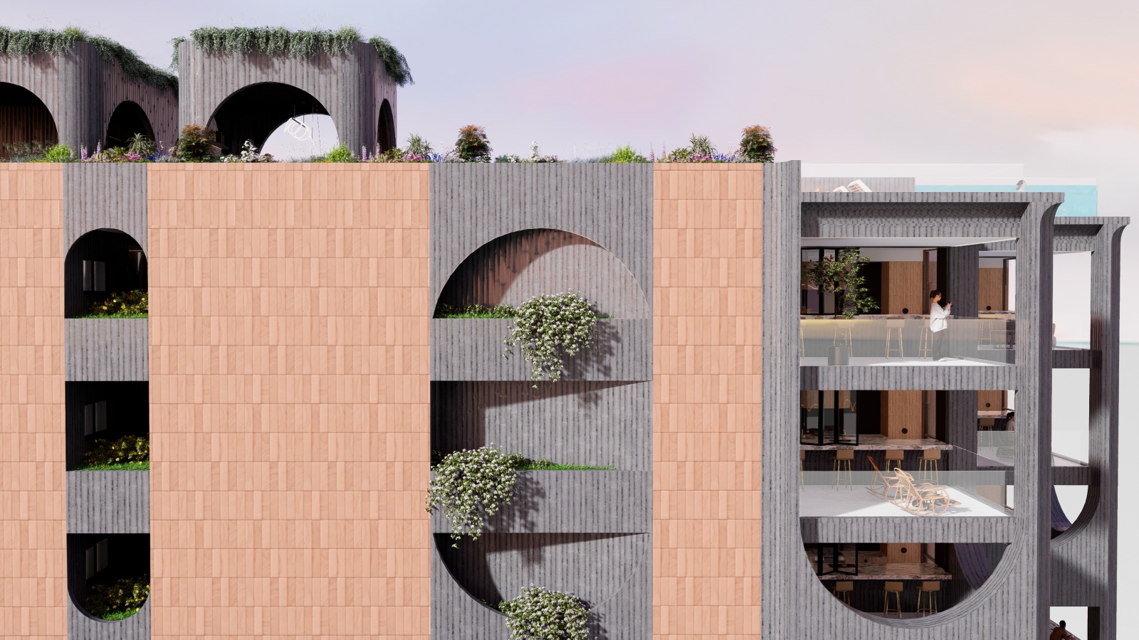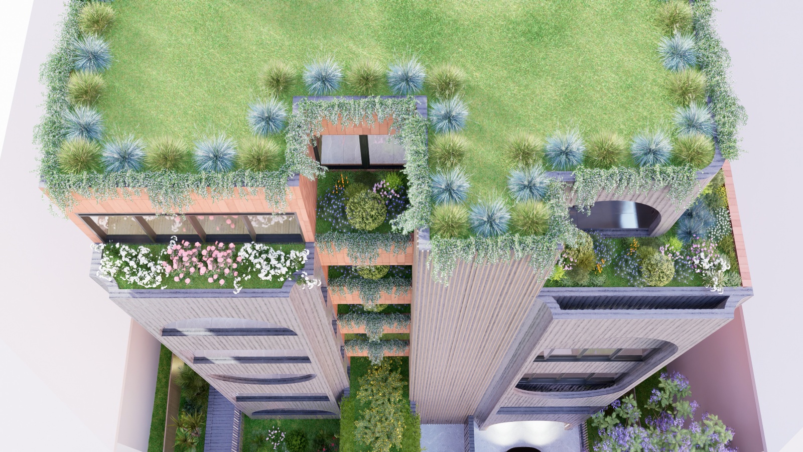 Designing a sustainable apartment building is a multifaceted challenge that requires balancing environmental, economic, and social considerations. Sustainability is firstly achieved in the project through the use of sustainable materials via local sourcing of materials to minimize transportation emissions and support local economies and also the use of recycled and reclaimed materials in the construction of the new building. Additionally, special consideration has been given to energy and water efficiency through the use of passive design features, geothermal heating and cooling systems, extensive use of energy and water-efficient fixtures, greywater recycling, and of course rainwater harvesting.
