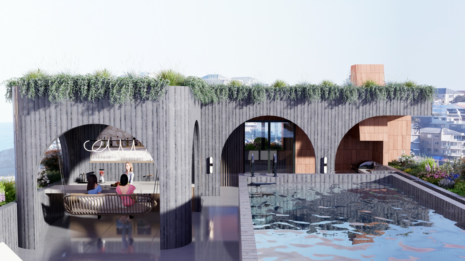 In the design of apartment buildings, introducing novel ideas can make a significant impact. Novel features and ideas that have been introduced include first mimicking the surrounding landscape with the use of a mainly sandstone-tiled facade and inoffensive bamboo-patterned concrete. The exterior design also incorporates biophilic design elements in the form of rooftop gardens, planter boxes, and vertical gardens. From a community-focused perspective, the rooftop has been reserved for all the residents with no one apartment monopolizing arguably the best space in the building. The space features a lap pool with an infinity edge overlooking Bondi Beach, a sauna, bbq areas, associated seating, and even a bar.