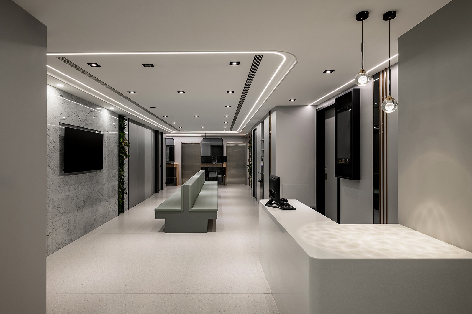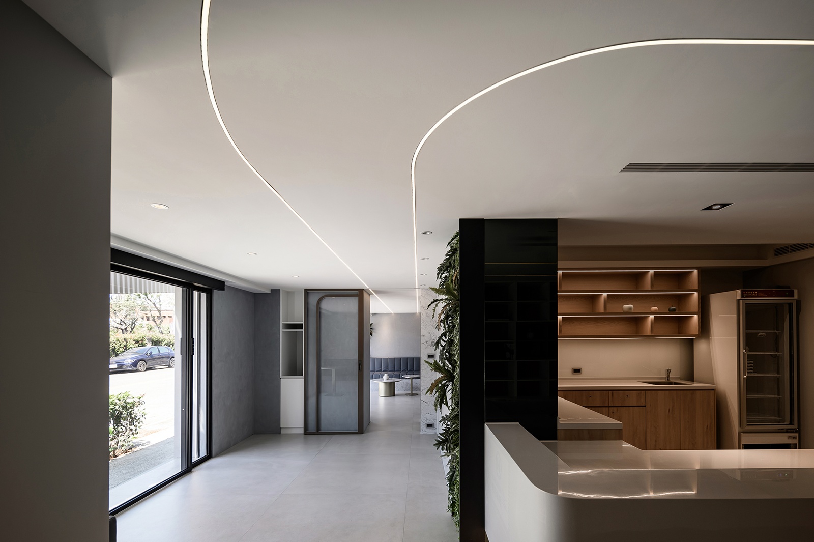 本案為老屋翻新設計,旨在平衡現代科技與設計美學,創造會呼吸的醫療環境。設計以「專業醫療信賴」與「親切溫柔呵護」為核心,透過流暢的圓弧曲線、高質感建材與自然綠意,突破傳統醫療院所的冰冷制式,打造融匯現代細膩與溫馨的健康守護空間。