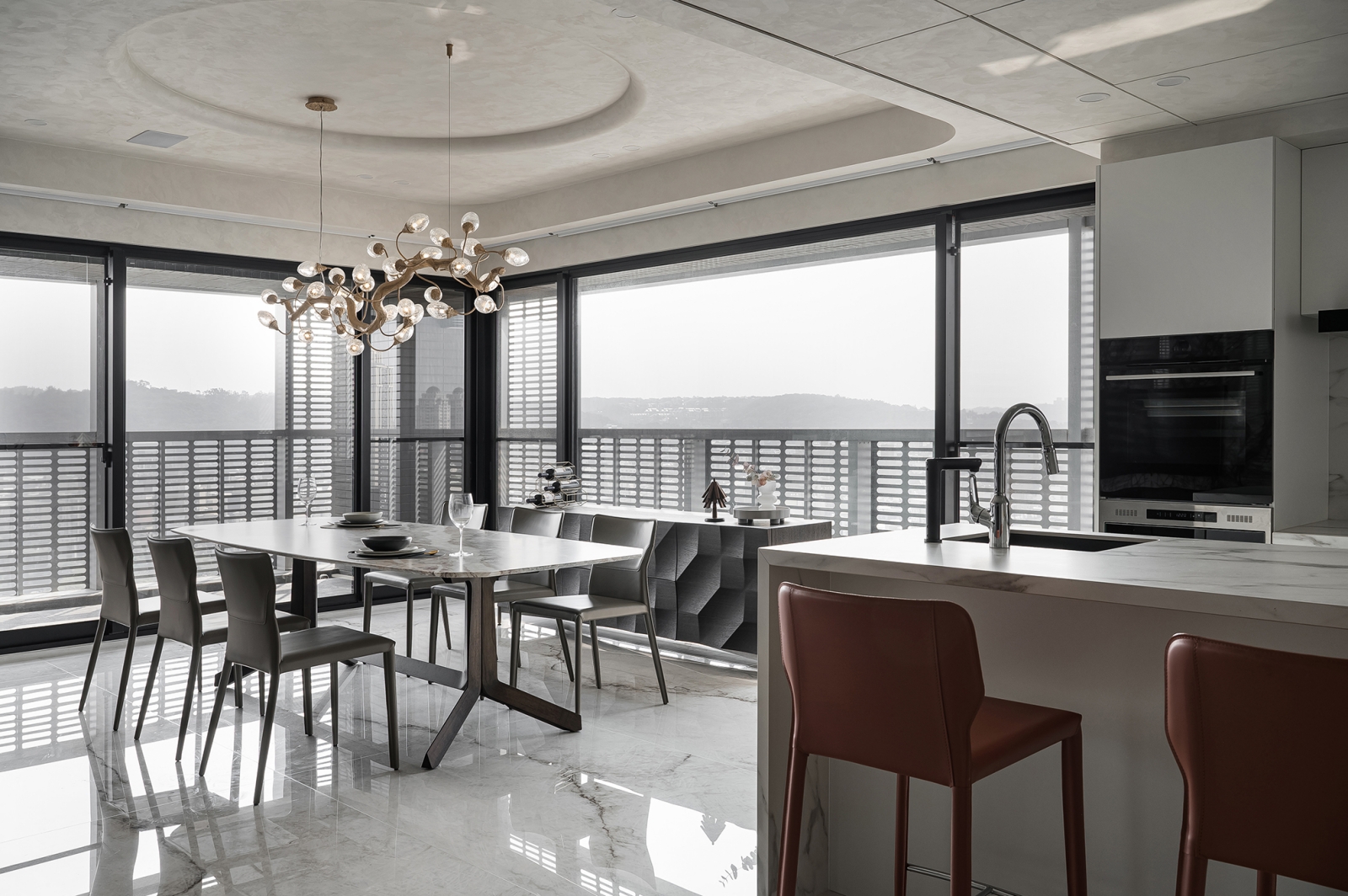 本案採用歐盟認證塗料,具良好耐濕性能,即使長期處於潮濕環境也不易變形或劣化,減少維修頻率,並降低對自然資源的消耗。設計團隊運用大面積臨窗設計,引入自然光源,減少對人工照明的仰賴,在設計與節能之間取得理想平衡,落實對生活質感與環境責任的雙重承諾。