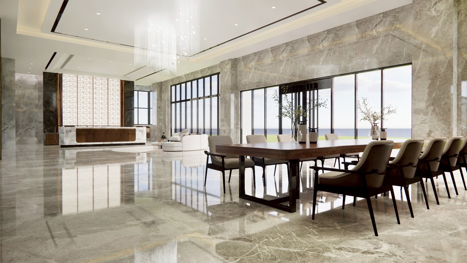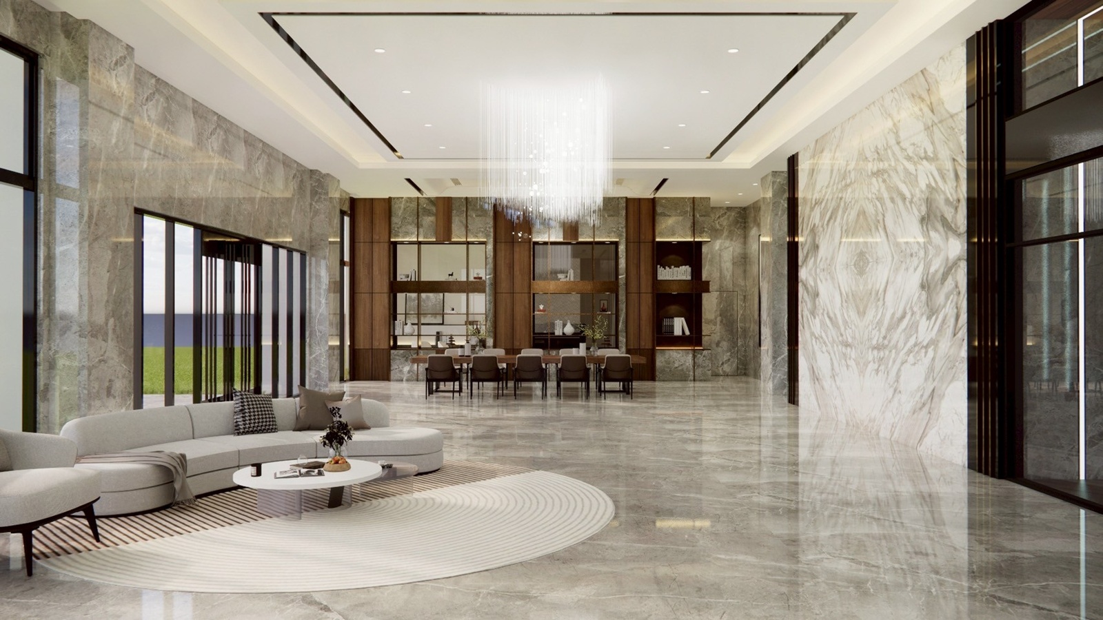 本案為地上15層、地下3層之集合住宅建築,位處高雄三民區重劃區核心地段,並鄰中都濕地、愛河綠廊與多所學區,享自然環境與都市機能兼具的地理優勢。設計團隊以環境脈絡為基礎,從街廓尺度出發,依據街角特性與基地條件,規劃弧形景觀陽台與框架立面;不僅突顯建物視覺焦點,更卓越提升每戶對外部綠帶的深度連結及採光質量,凝鍊城市靜謐風韻,勾劃「都會清幽宅」的未來暢想。