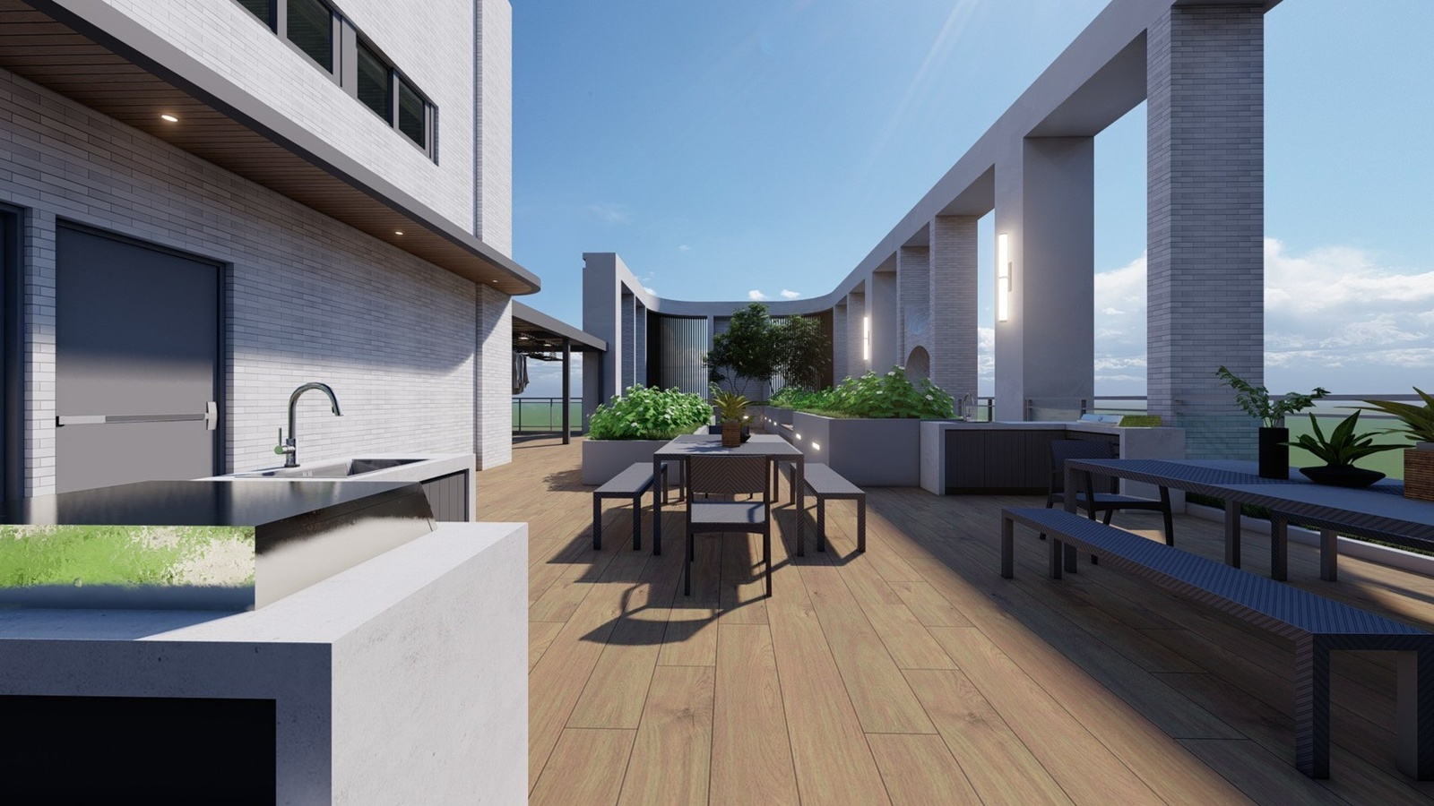 基地首層整合商店、開放式綠地與社區管理機能,打造親民友善的社區入口;地上二至十五層,涵蓋兩房一衛到三房兩衛等多元格局配置,靈活應對各類型住戶需求。全戶皆享休憩延伸空間,匯合水平飾板與深框元素,拓展居住尺度;空調機組巧妙隱於格柵後方,進一步平衡立面整潔與維護便利,促進全域性能與舒適度同步提升,為安居體驗帶來實質加值。
