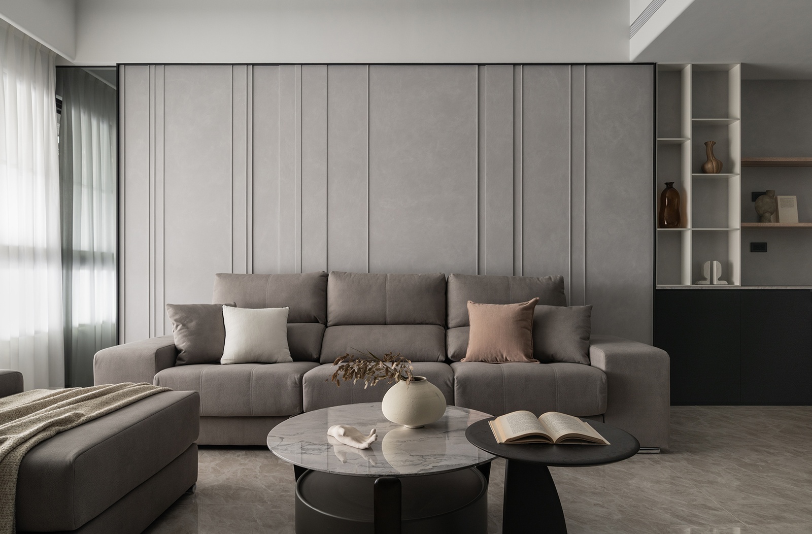 此案注重材質的耐久性,選用天然石材、實木等高持久性的材料,減少頻繁更換需求。智能照明系統採用LED光源與調光技術,有效降低能耗。整體規劃考量生活變化的適應性,如可移動式家具與彈性收納設計,延長場域壽命,實現環保與美學並重的永續居住理念。
