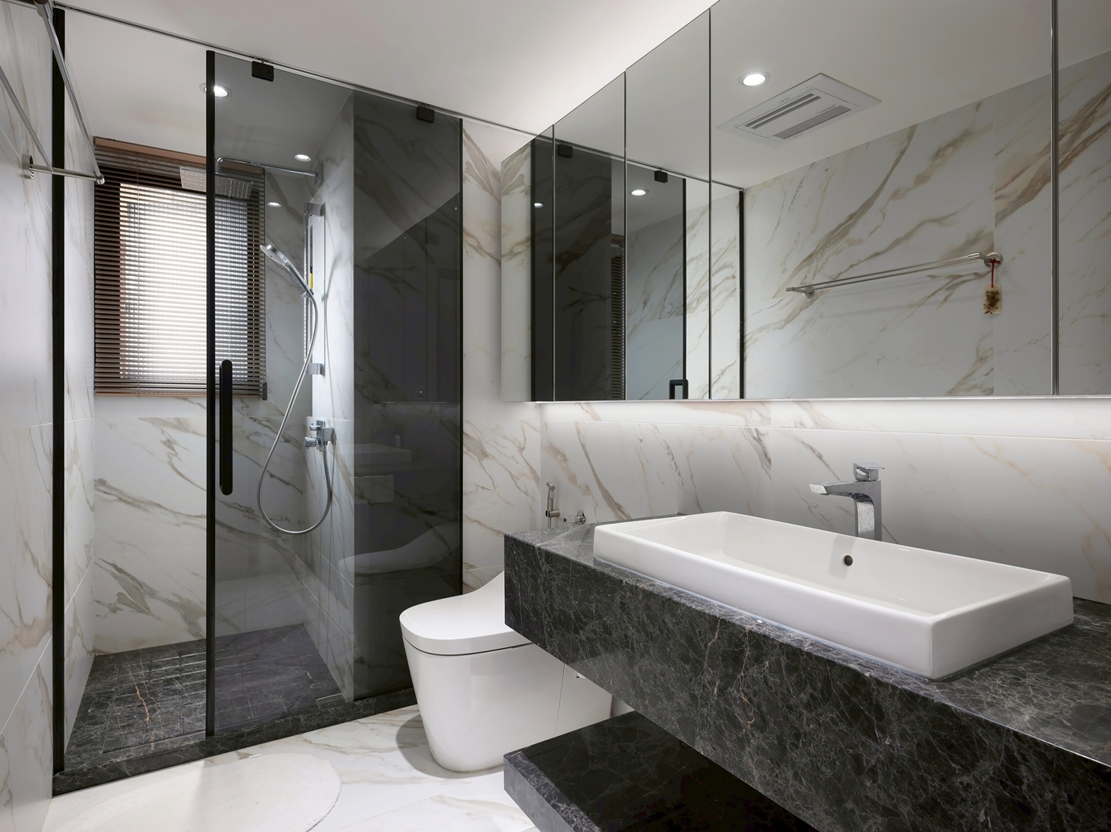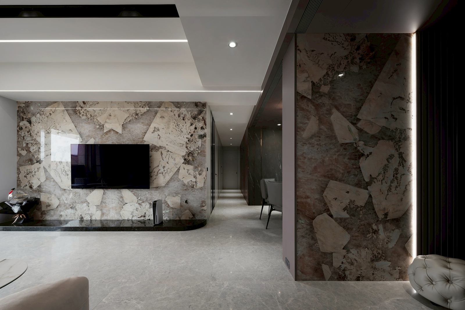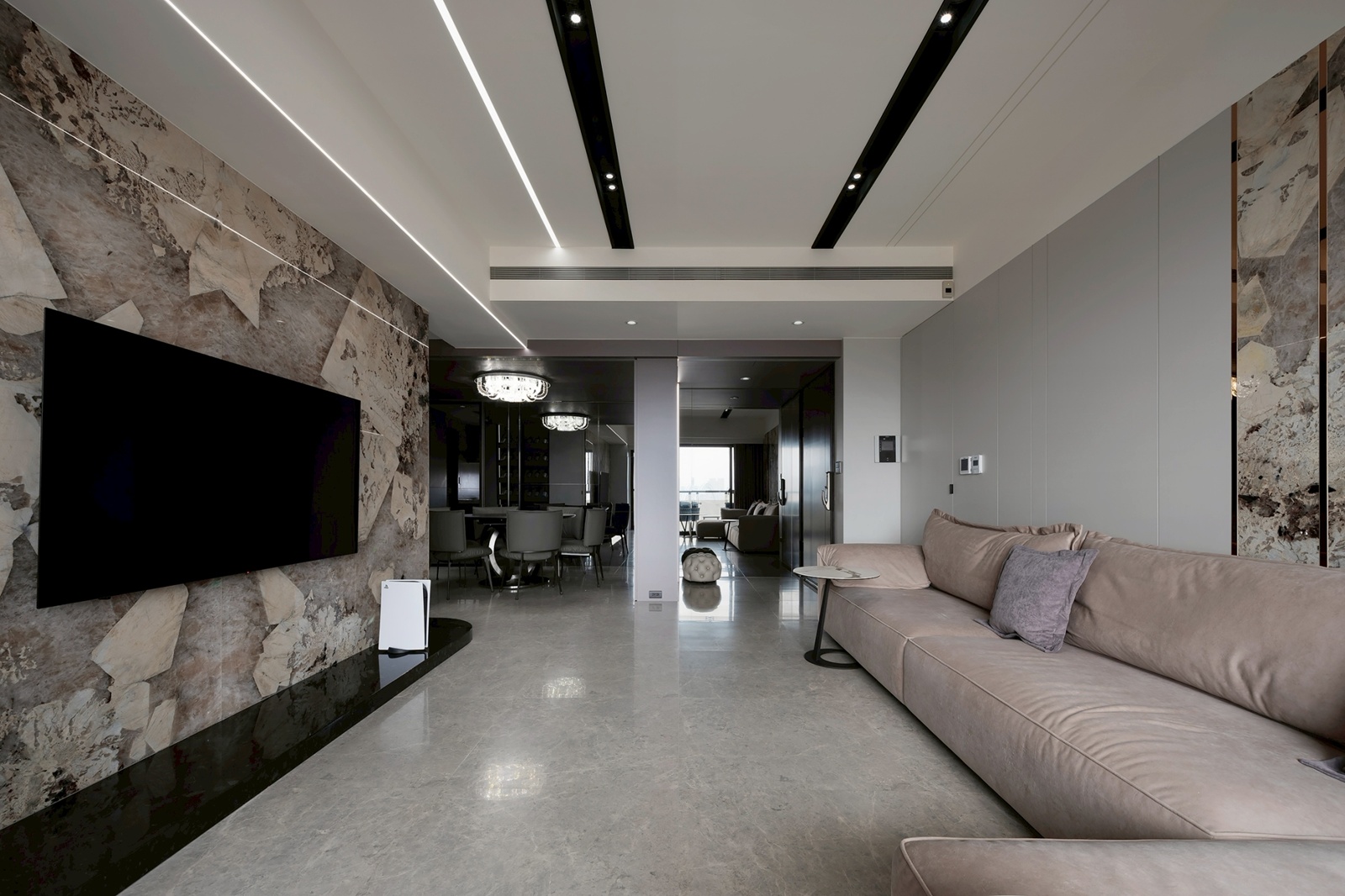 該案著重永續與居住品質,通過配置全熱交換機與除濕設備,全面提升空氣品質與住房舒適度;並選用大量天然大理石與耐磨板材,延長裝潢壽命並減輕環境負擔,展現環境友善理念。整案佈局在質感與機能間取得絕妙平衡,為屋主與愛寵構築一處長效而優質的家居場域。