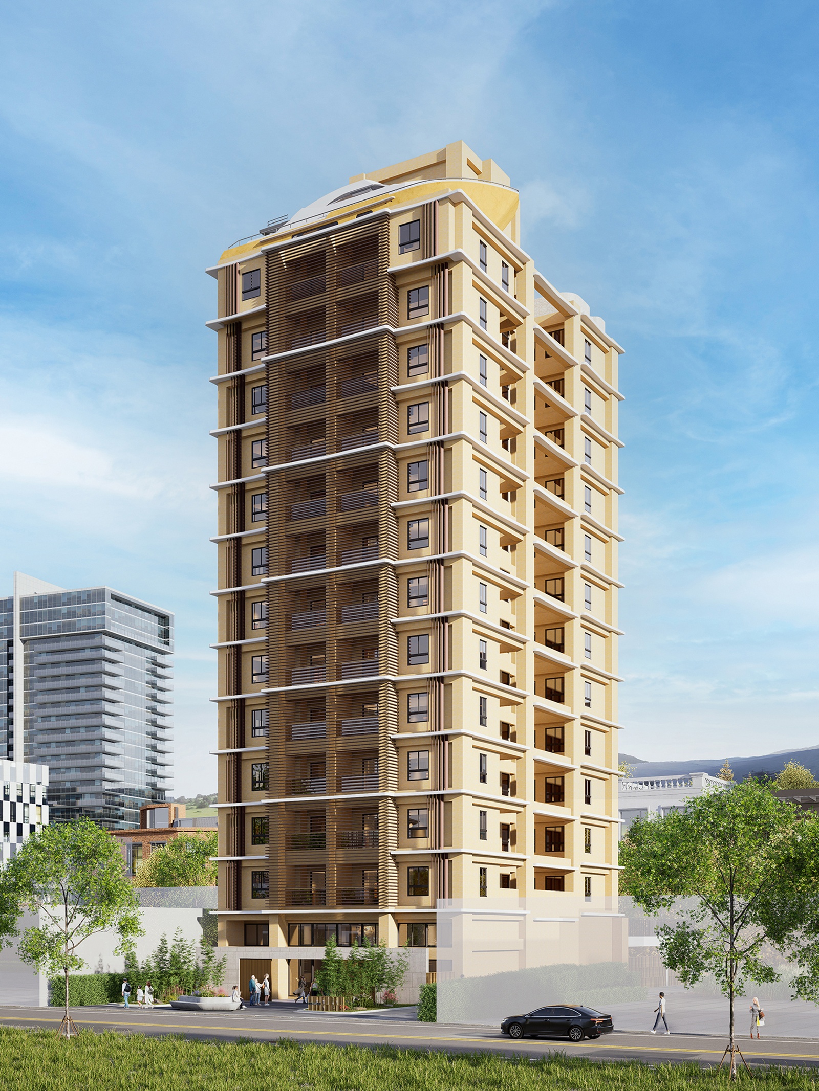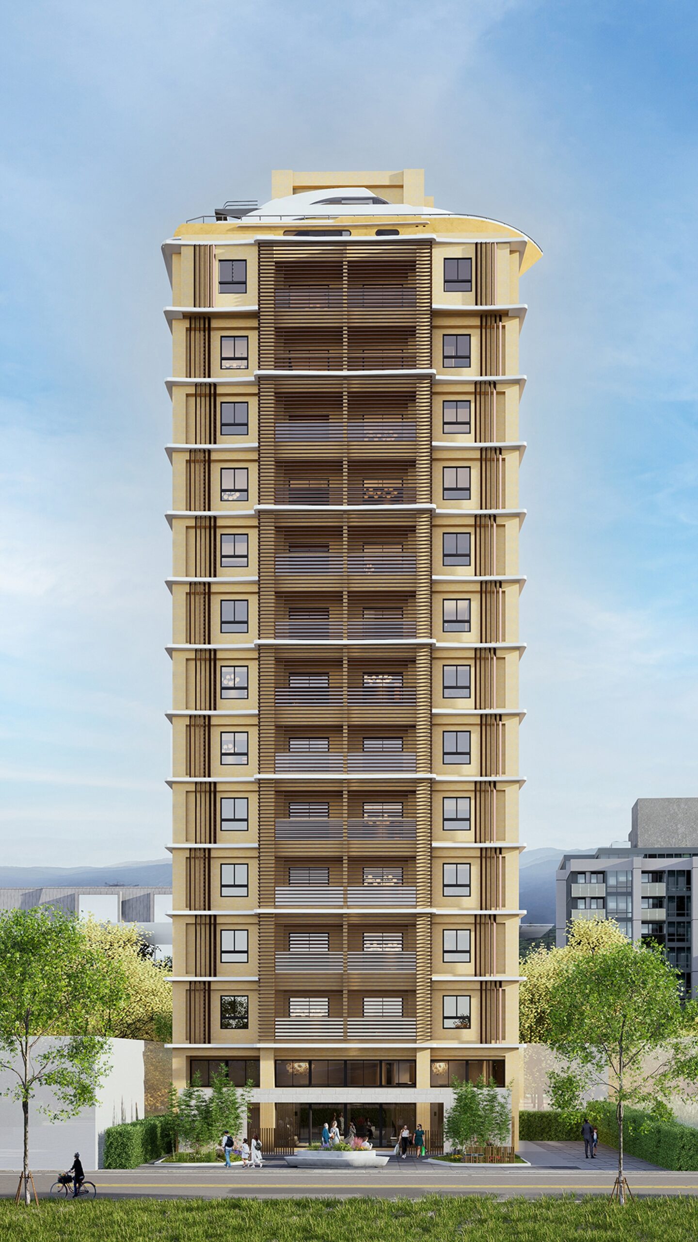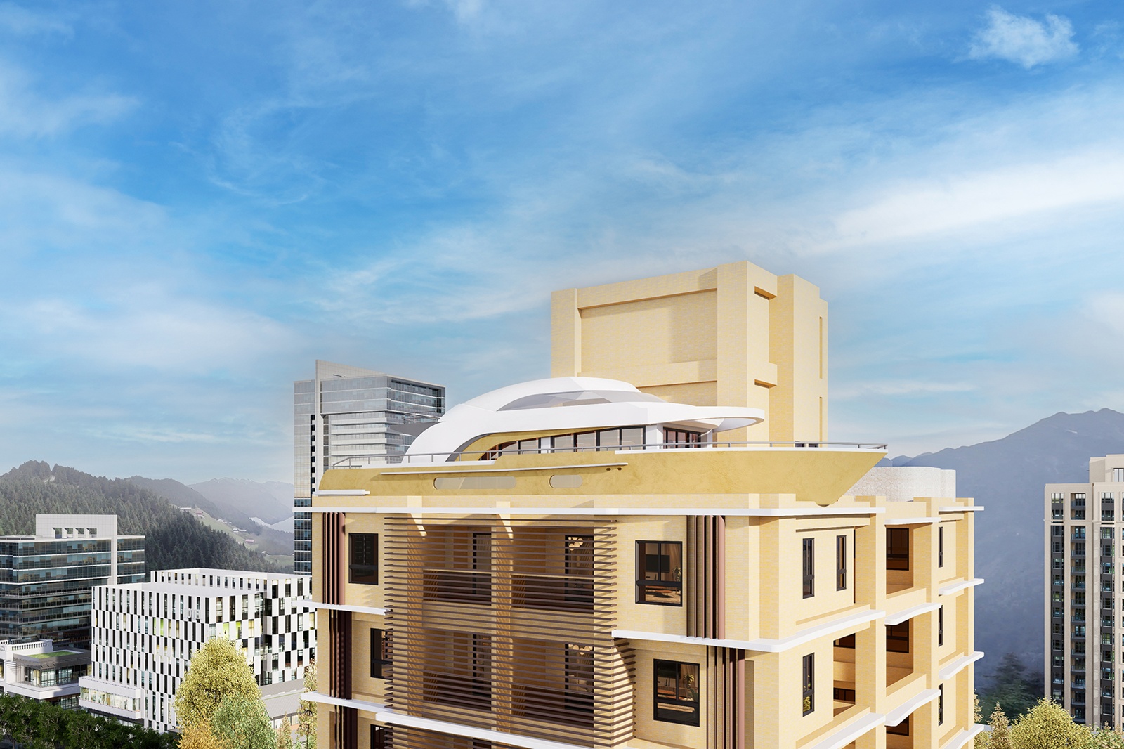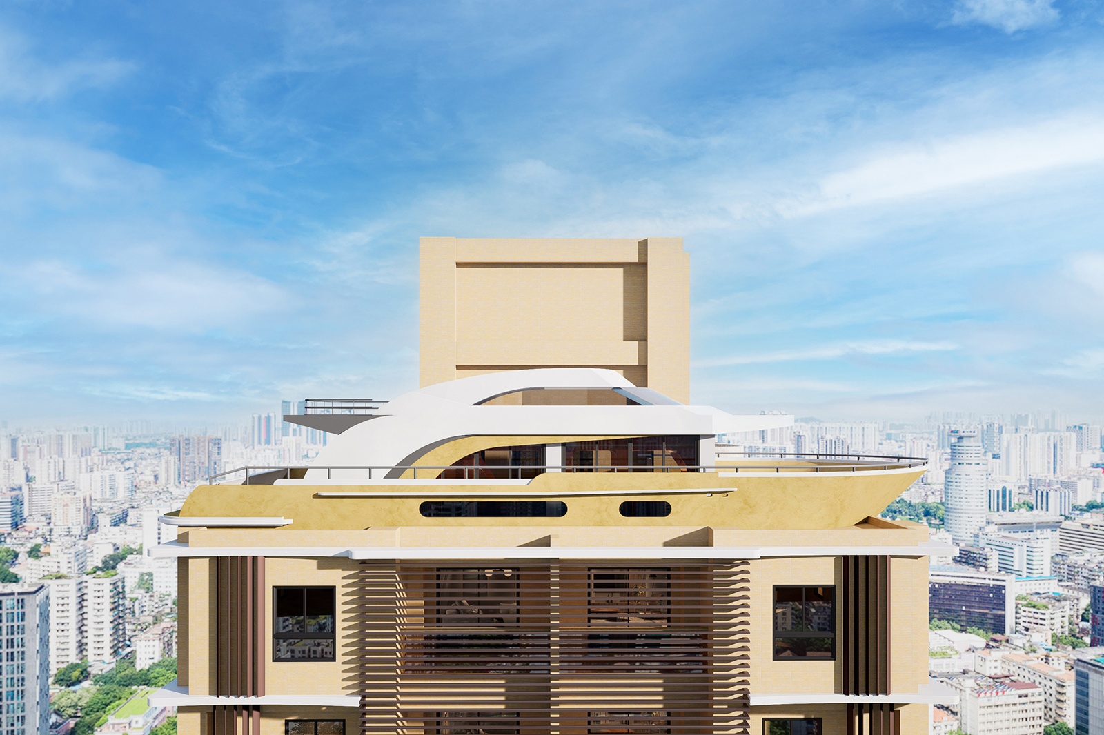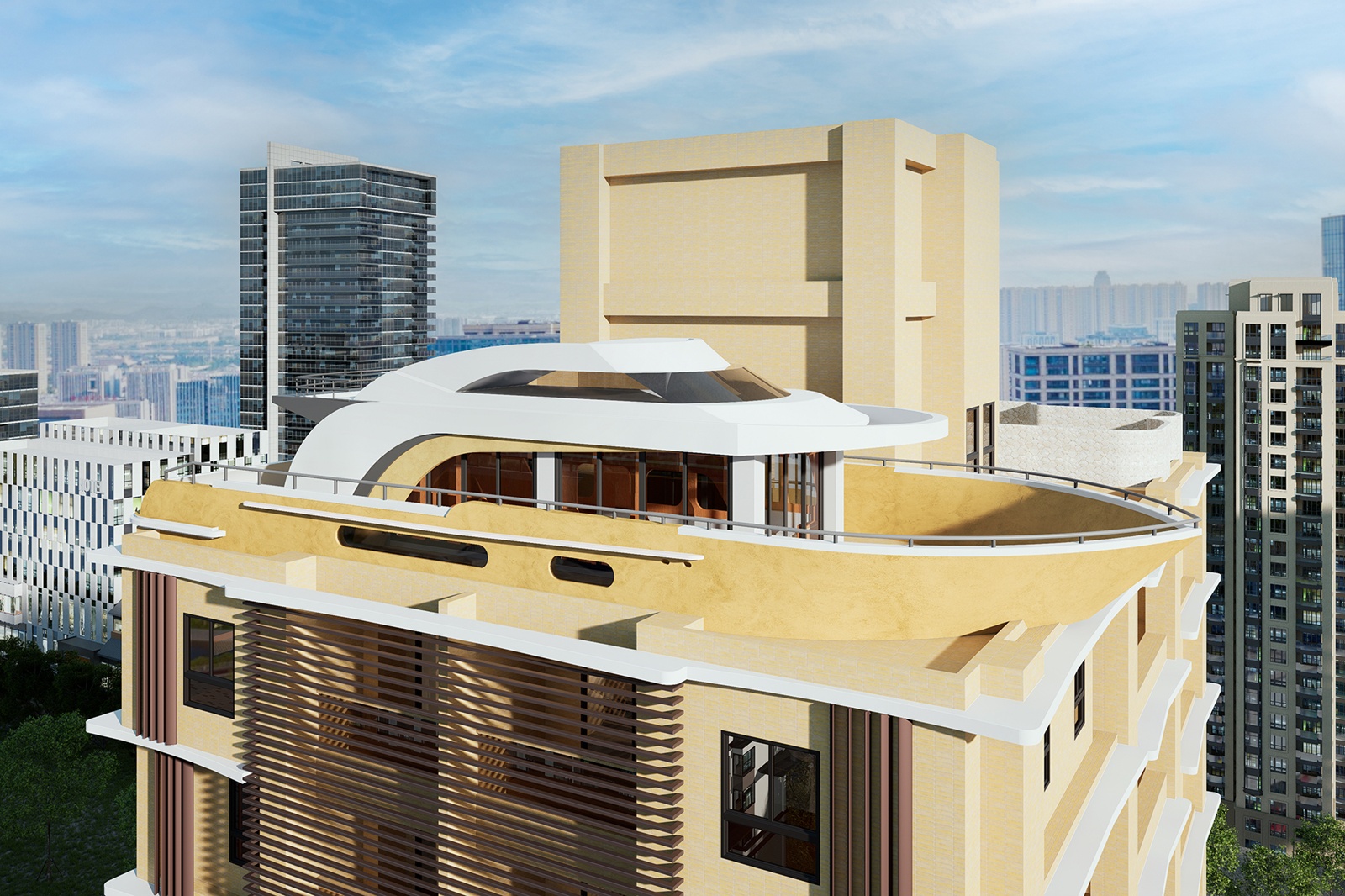 本案為住宅大樓規劃案,其設計發想汲取了蘇州漫遊的經歷和業主信仰的遊艇精神。從轉化蘇州園林的竹林元素,到結合專利格柵設計,不僅能表現內斂雅致的新東方美學,還能提升住所的隱私性、安全性與通風效率。而建築頂層所設置的豪華遊艇造型發呆亭,則能在形塑城市鮮明天際線的同時,也為住戶提供日常交流、休憩、觀景的場所,藉此豐富都市生活的層次與想像。