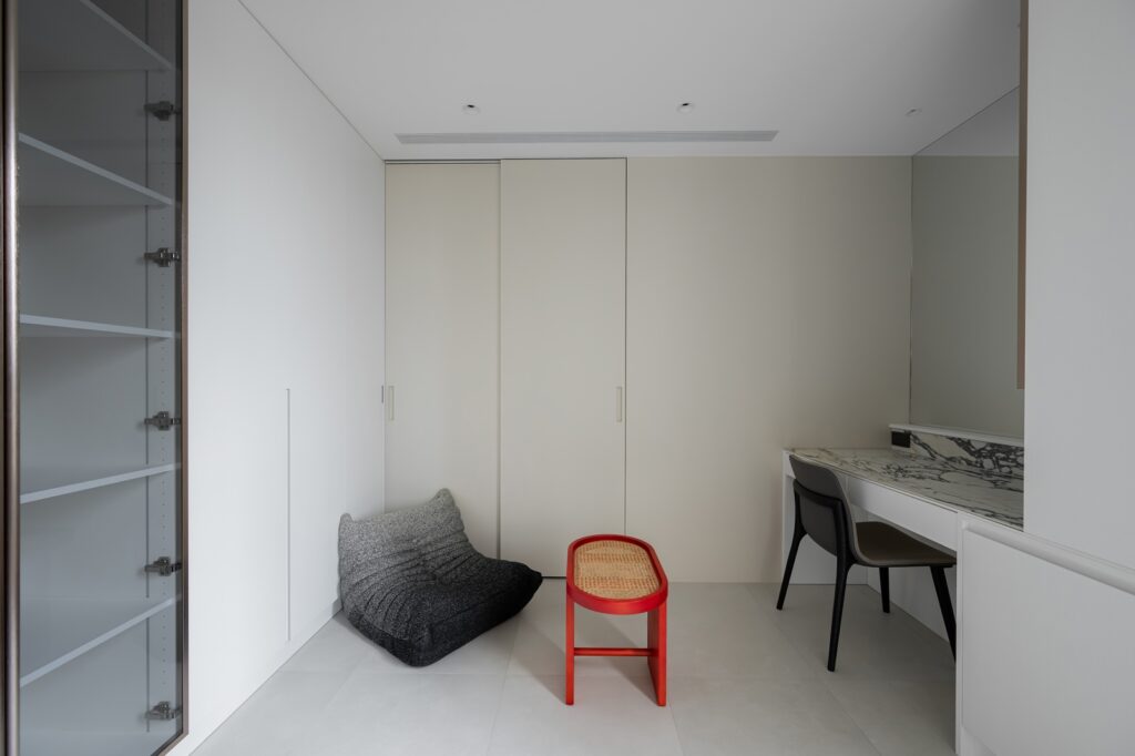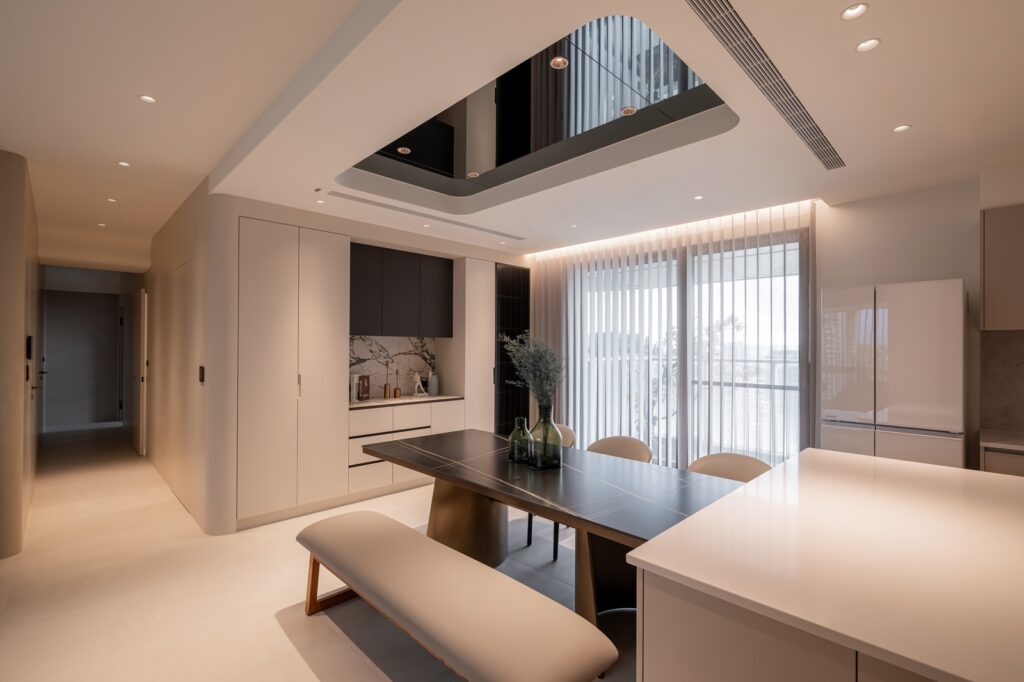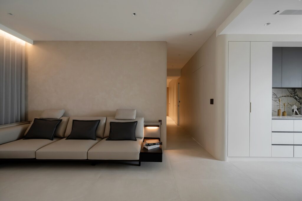 本案採柔光奶油色調結合義大利礦物塗料為題,透過自然光影、低飽和石材與木質紋理,構築理性與溫度並存的棲居。設計理念以「留白,是空間的呼吸」為精神,藉刻意的停頓與節奏緩衝,形塑空間秩序和韻律。此外,透過法式侘寂的美學語言,讓家具、藝術品與居者成為空間主角。整體以「安靜的奢華感(Silent Luxury)」為核心,捨去繁複裝飾,藉比例、光影與質地的細膩對話,呈現無需言說的高級格調。