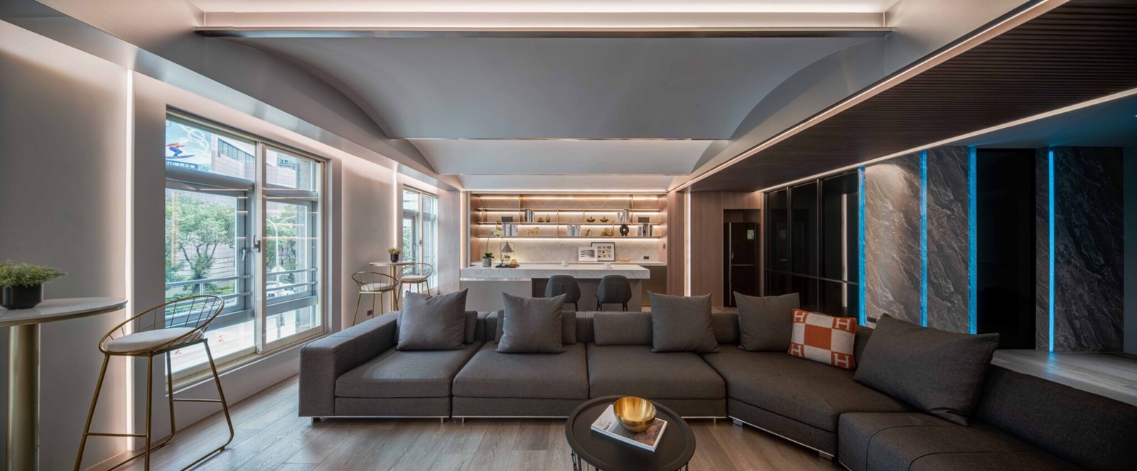 • 動線串聯:開放式格局串連沙發區、吧台,優化使用彈性與場域效率。