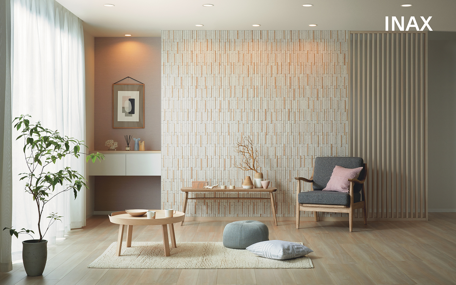 INAX的品牌理念深受自然啟發,也將如此匠心運用在產品的美學設計上。ECOCARAT健康壁磚的質地柔和、色調自然,全系列多達37款以上設計,玄關、客廳、臥室或浴室乾區都能搭配,從沉穩內斂的日式風格到明亮舒適的北歐氣息,可滿足各式室內裝修風格的需求。正如日式文化所想要傳遞的兼顧美感與考慮周到的細節,創造質感與舒適兼具的居家空間。