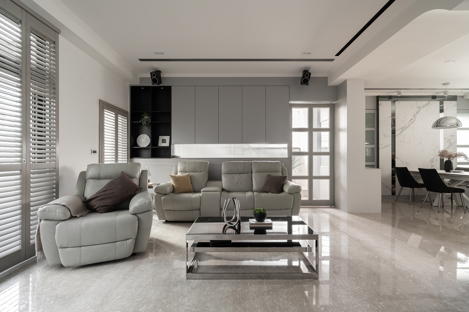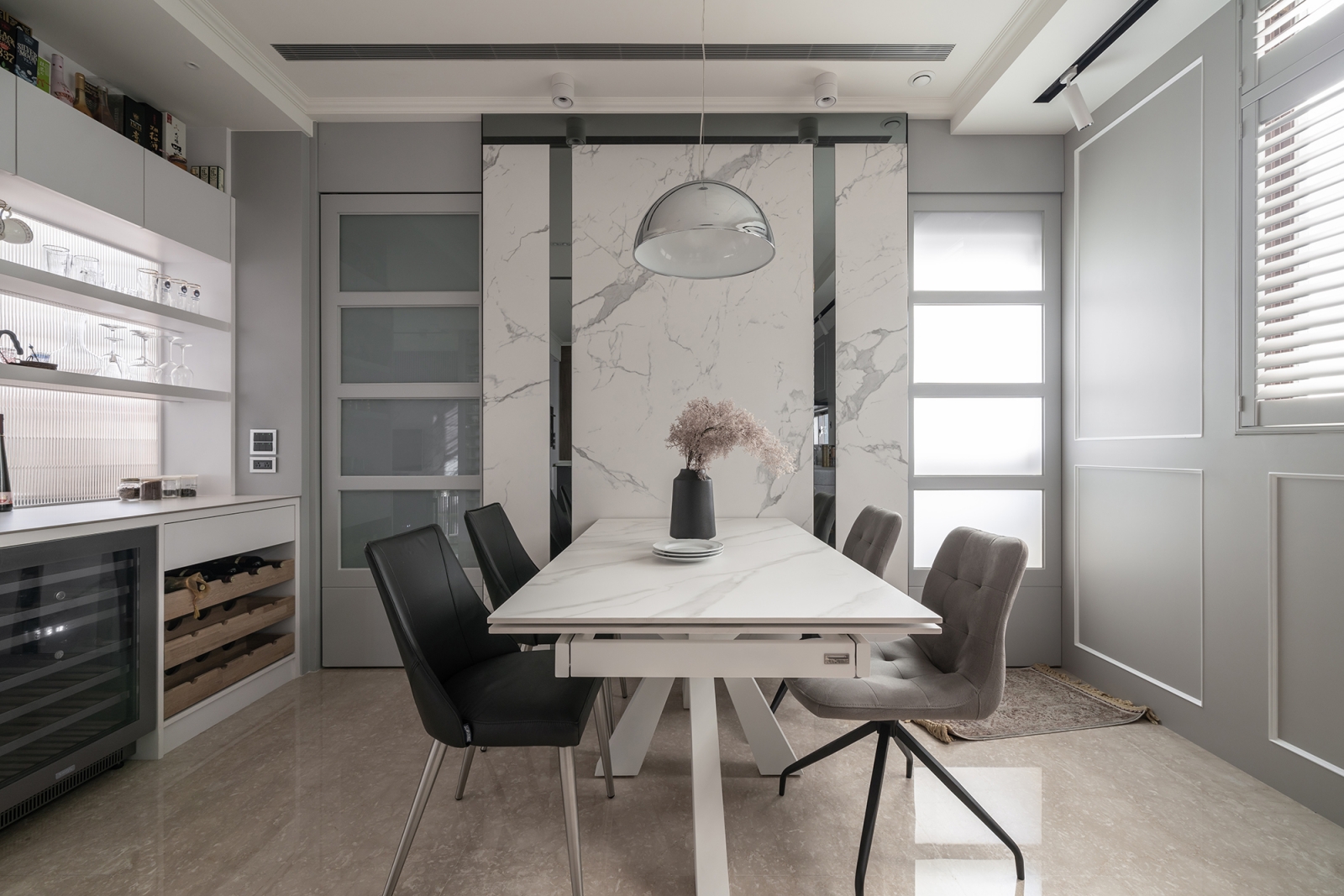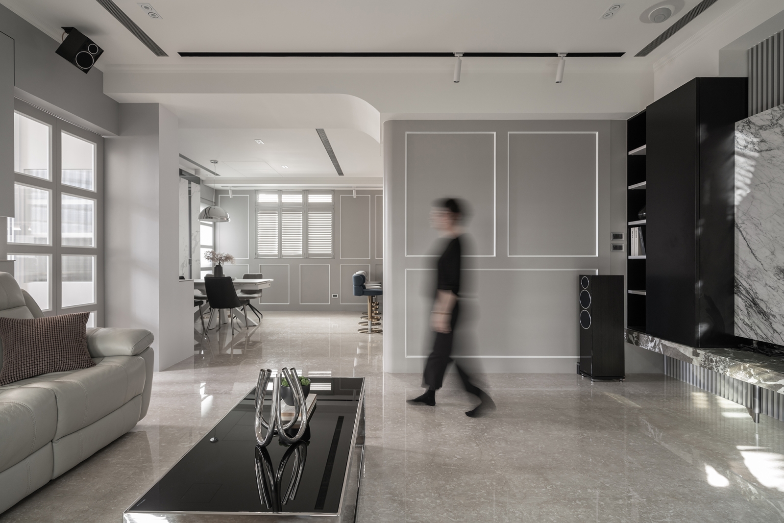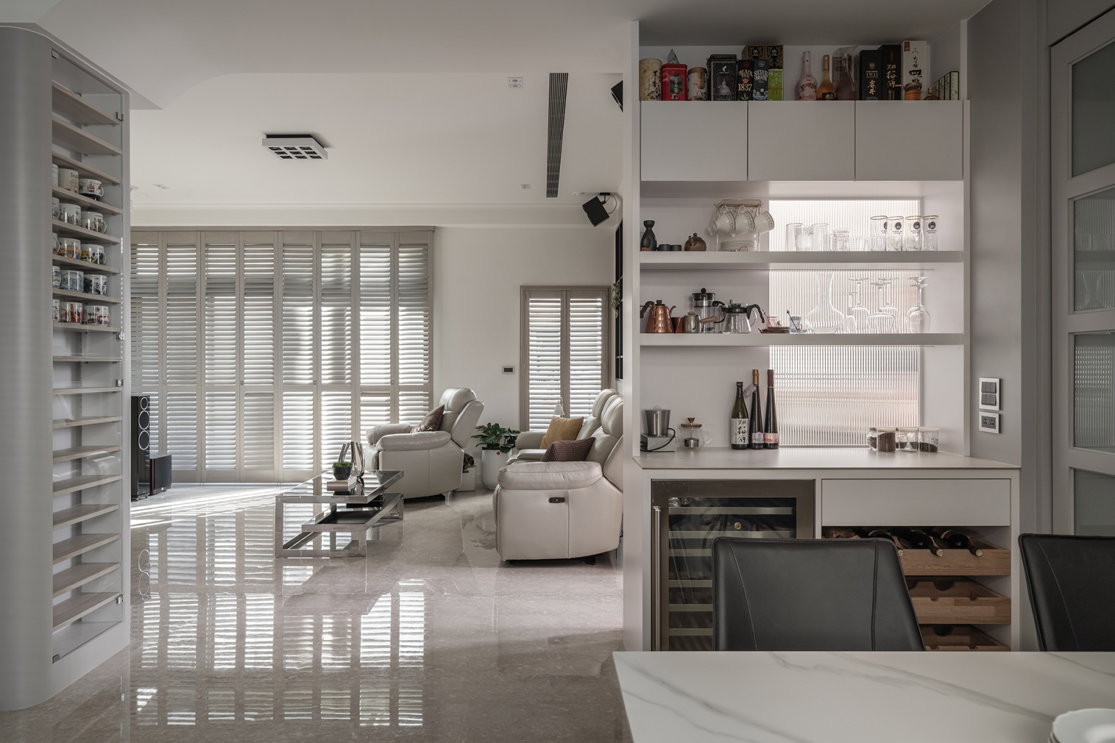 此次規劃以保留局部既有櫃體和「加一」的設計形式,延續老屋價值並融入現代生活所需,同時降低資源浪費、實現永續。另外,空間佈局強調自然採光與通風效率,如採用開放式設計、透光材料及增設百頁窗等,可減少人工照明與空調的使用,達到節能減碳的效果。