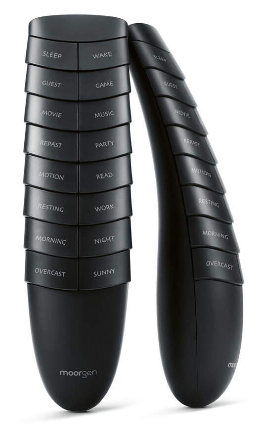 [Moorgen Smart Remote Control]同樣將多種控制功能整合於優雅的圓形互動設備中,其精緻的金屬做工和震動回饋,讓控製本身成為一種享受。