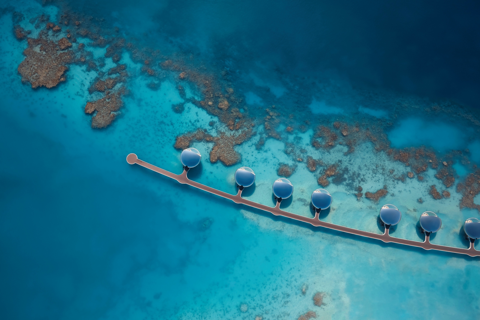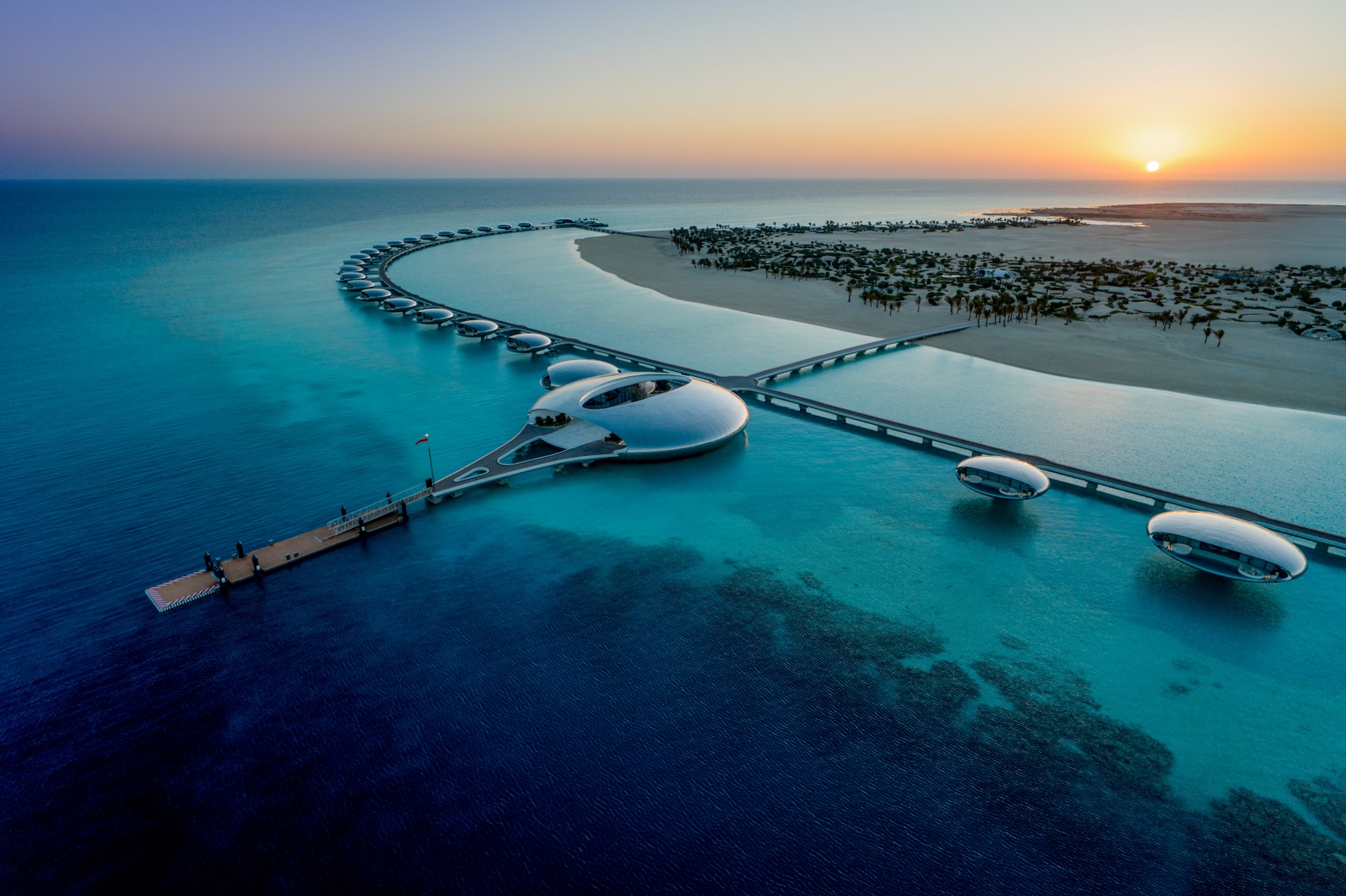 Shebara is a 73-key hyper-luxury eco-resort on Sheybarah Island in Saudi Arabia’s Red Sea Archipelago. Developed by Red Sea Global, the project is a pioneering model of regenerative luxury, aligning with Vision 2030 to deliver a fully off-grid, net-zero destination that protects and enhances one of the world’s most pristine marine environments. The resort offers a mix of overwater and beach villas ranging from one to four bedrooms, supported by high-end dining, a spa, wellness facilities, private beaches, and family and adult pools. Guests travel exclusively by seaplane or private boat, reinforcing the sense of isolation and disconnection. A fully electric transport system ensures movement across the island is zero-emission, while dedicated butler service creates a deeply personalised experience. Architecture is inspired by the island’s natural palette of waters, sands, and horizons. The stainless steel overwater villas are designed as floating orbs, recalling pearls suspended above the sea, reflecting shifting light and colour. All structures were placed with millimetre precision to avoid disruption to land and seabed, using steel pilings instead of dredging or concrete foundations. Sustainability drives every decision. A solar-powered microgrid provides 100% renewable energy, eliminating the need for diesel generators. Water is produced through solar desalination, wastewater is recycled on-site, and solid waste is composted or reused, supporting a zero-waste ethos. Materials, particularly marine-grade stainless steel, were chosen for durability, recyclability, and low embodied carbon. Located beside a 40-metre reef drop-off, Shebara offers direct access to world-class diving. Beyond conservation, it actively contributes to restoration through one of the world’s largest coral gardening initiatives, regenerating over 300 football fields of reef. Shebara is more than a destination—it is a regenerative model of hospitality where architecture, nature, and technology converge to shape the future of sustainable luxury.