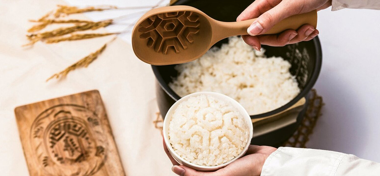 設計團隊提取了傳統木質米糕模具的基礎形態語言——圓潤的勺身輪廓與便於持握的柄部結構。它並非直接複製,而是進行了現代化的抽象與提煉,使其既保留了傳統工具的親切感,又符合當代美學的簡潔與功能性。