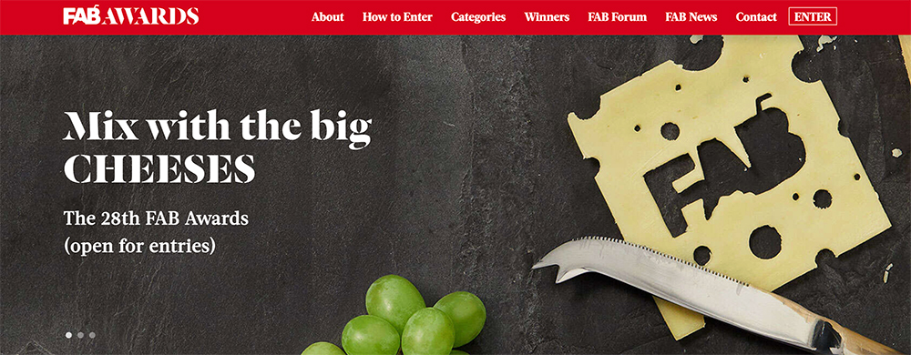 FAB獎是一項國際獎項計劃,完全專注於飲食品牌和商店。它認可了傑出的創意作品在品牌建立的重要貢獻,識別並獎勵來自60多個國家的優秀從業者,更承認他們對客戶及其代理商的貢獻。現在已經進入第二十一年,FAB Awards已經吸引了來自全球60多個國家的眾多客戶,包括每個出色的代理商,設計諮詢公司和許多重要的挑戰者機構。參賽者可以選擇創意卓越類別(Creative Excellence Categories)或實用性類別(Effectiveness Categories)或者兩者參賽。2018 FAB年度代理商為BBDO紐約,其他FAB獎頒發給了來自世界各地的國家,所有頒獎晚宴都在倫敦The Hurlingham Club輝煌舉行。FAB年度最佳品牌獎由Mars,Incorporated獲得,他們贏得了各種類別的13項提名,並獲得8項FAB獎和1項FABulous獎。Bv c vbbFAB年度最佳品牌獎以及FAB年度最佳代理商獎將迎來Google連續第五年的贊助。仍然沒有其他國際獎項計劃專注於和我們相同的領域,FAB獎將持續為代理商及其客戶提供特別的機會。所有FAB參賽者也被邀請參加我們的FAB論壇 – 食品和飲料論壇 – 谷歌的思想領袖,也有幾個品牌和代理商參加。