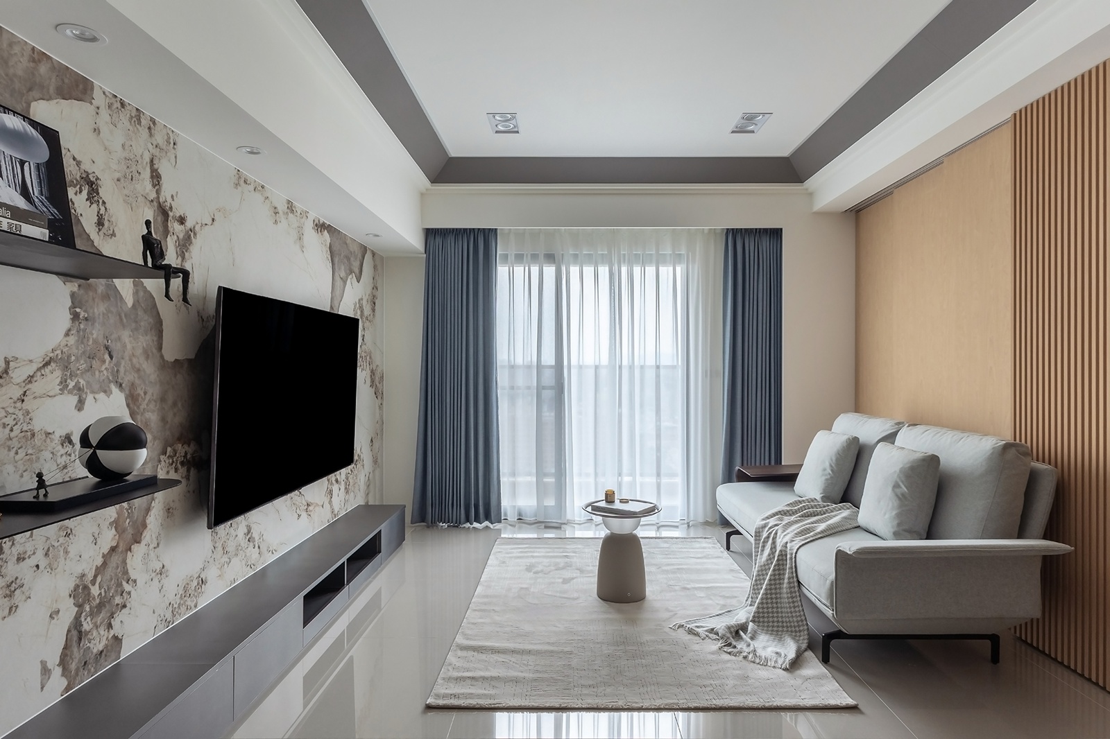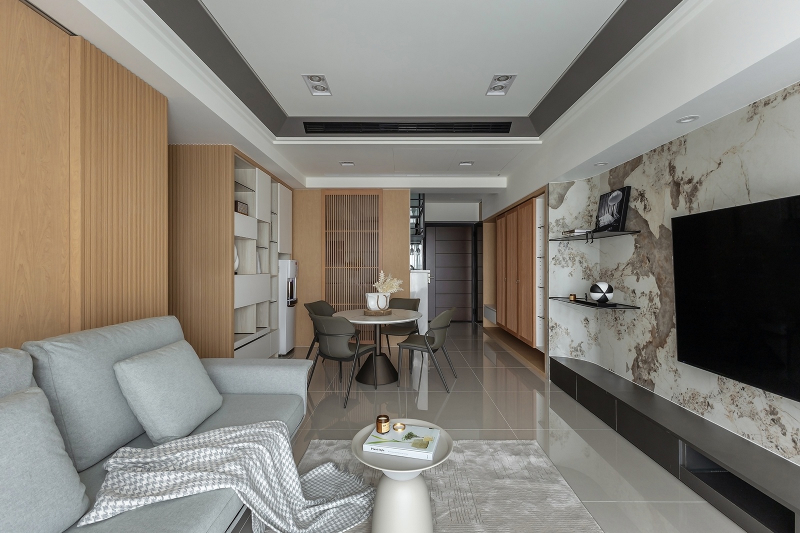 本案以「通透秩序」為設計主軸,回應屋主在高壓生活中對安穩的渴望。設計透過格柵的虛實節奏,引導光線、氣流與情緒的流動,使開放格局在通透之間仍保有層次與界定。整體語彙取材自現代日式留白精神,融合木質與岩板材質的對話,讓理性結構與溫潤質感共存,形塑內在平衡與靜謐的日常場景。