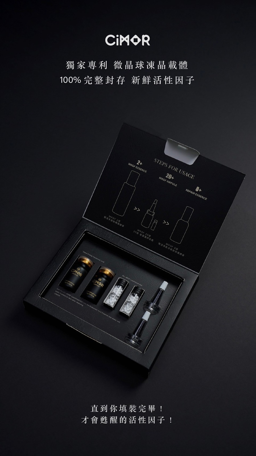CIMOR 20倍MRGF能量晶球安瓶+海洋能量玻尿酸 不只讓肌膚變亮,更能解決 八大常見肌膚問題,像是乾燥、敏感、醫美術後修復、日曬受損等,溫和但超有感,連敏感肌、痘痘肌、油肌、乾性肌都能安心使用。這組護膚產品採用純生物醫學技術,更是台灣唯一Puritide專利技術合作品牌,經過 6 年研發與專利申請,不僅修護力滿分,還能幫助肌膚變得更細緻、透亮、穩定。