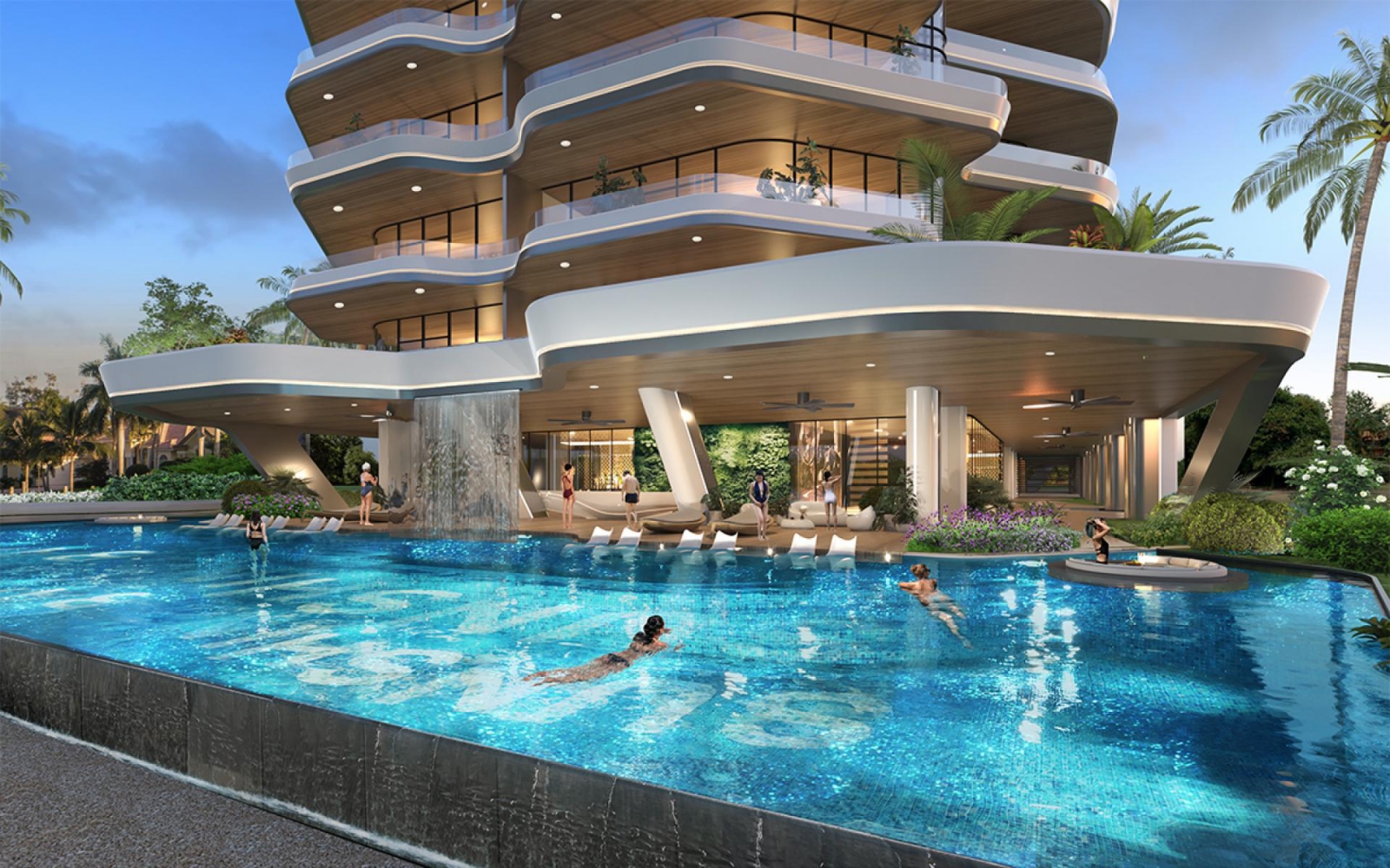 Thus, MDL chose to orient the rooms in a slanted manner, creating Sunshine Bay’s signature undulating façade, which is formed by each unit’s large, curving balcony.