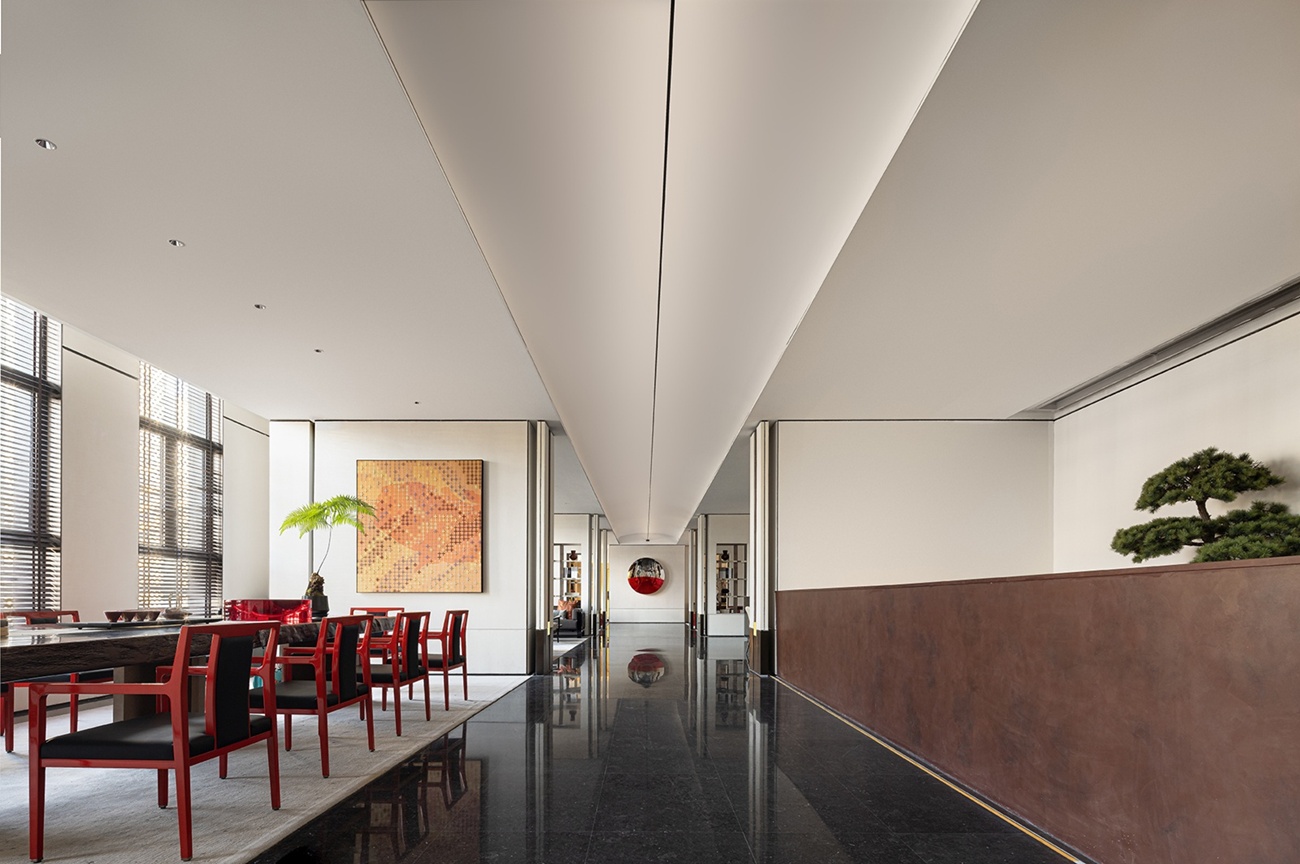 設計師深度共鳴中軸之上的東方文化,空間考究對稱的均衡,色彩調和東方審美,打造獨特的文化場域,關照人與空間的關係,演繹尊雅氣質。