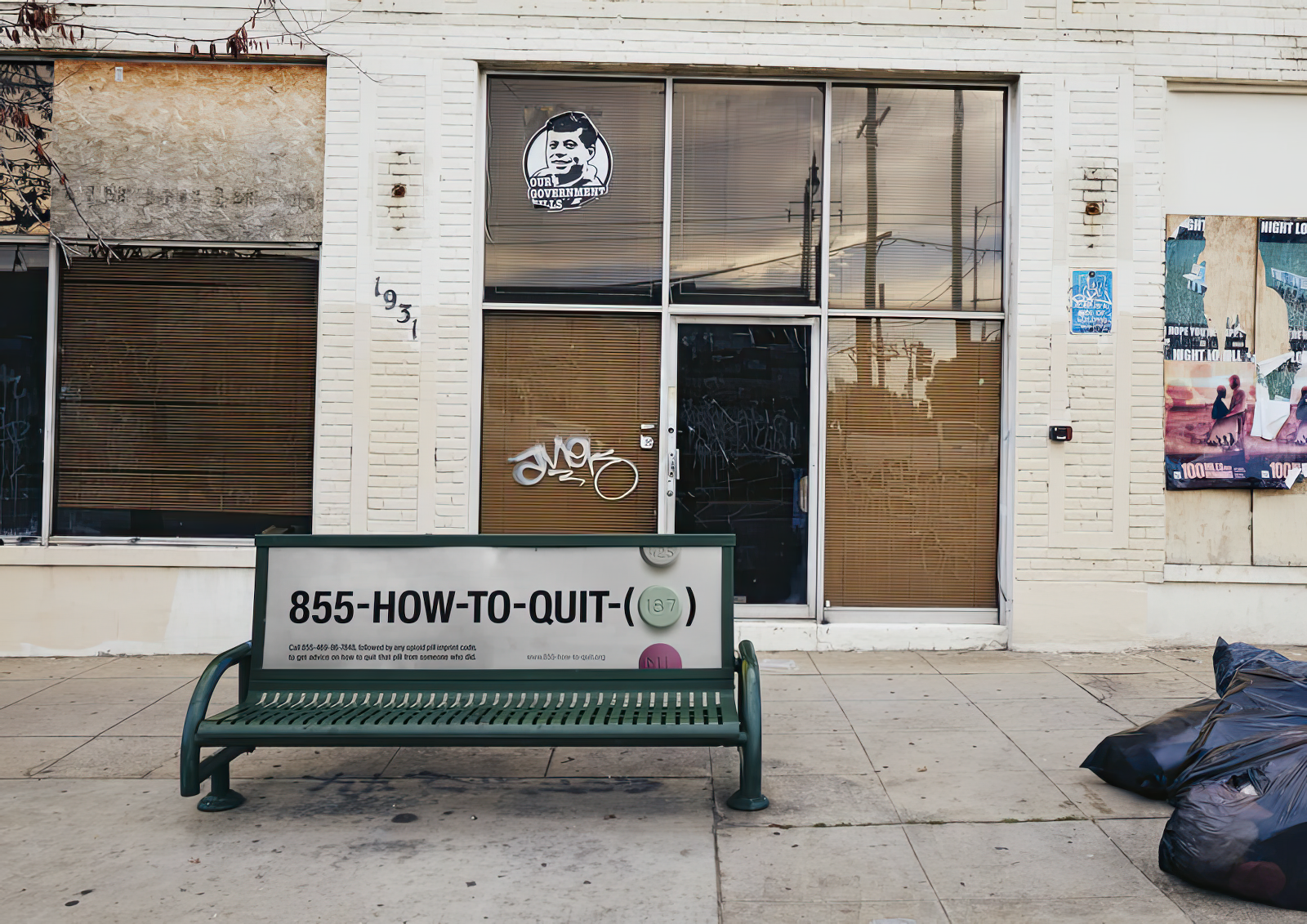 評審評語「此作品旨在鼓勵有成癮問題的人尋求治療,專為此設立了「855-HOW-TO-QUIT-(OPIOIDS)」熱線。透過戶外廣告、社交媒體及影片渠道進行全國性宣傳,並引導社會對藥物議題的重視,可謂一巧妙塑造社會街景的行銷活動。」