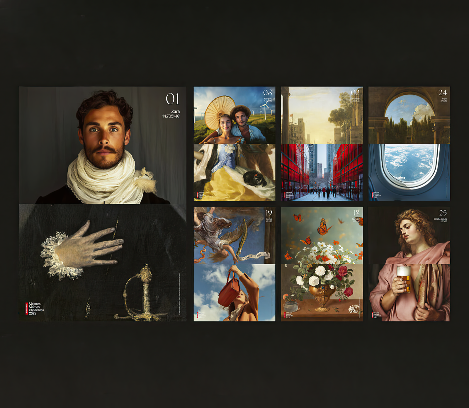 紅點至尊獎-海報設計|西班牙|Interbrand:西班牙最佳品牌30選-藝術化加工海報 Masters – Interbrand’s Best Spanish Brands 2023