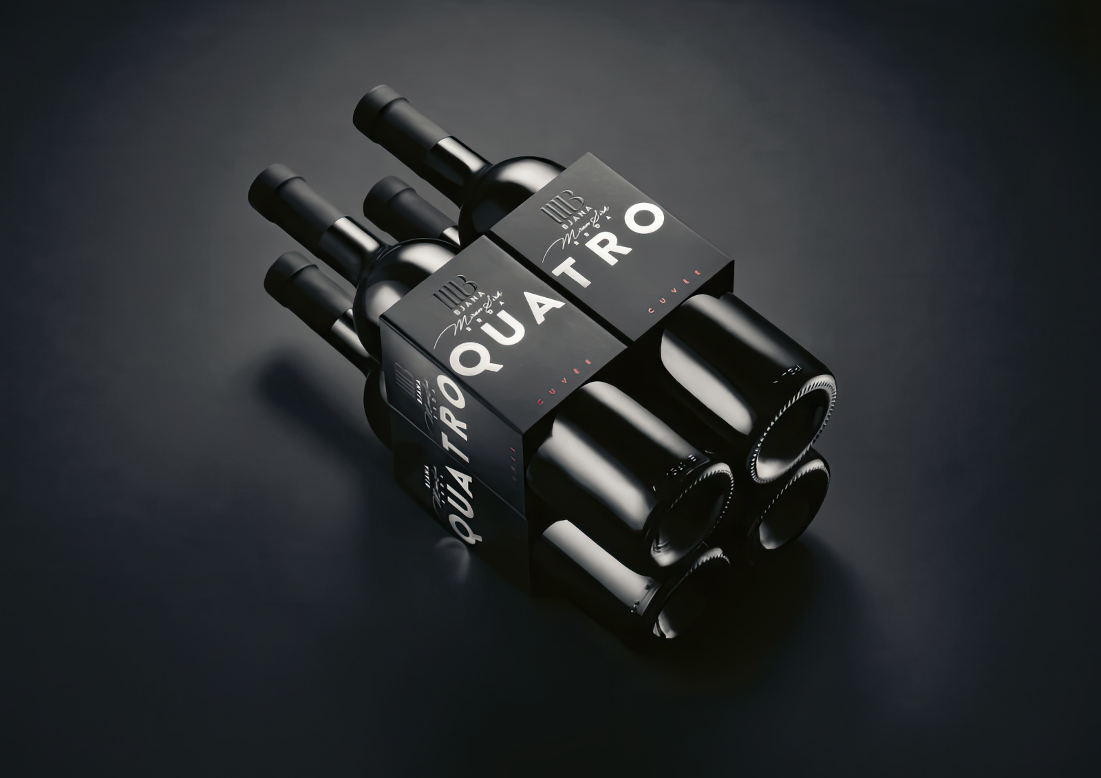 評審評語「這個產品取自四個不同葡萄莊園之葡萄,釀製而成的混釀酒。這四座莊園不僅賦予酒名靈感,也啟發了方形酒標設計,稜角分明的結構使瓶身更易於側放儲存。」