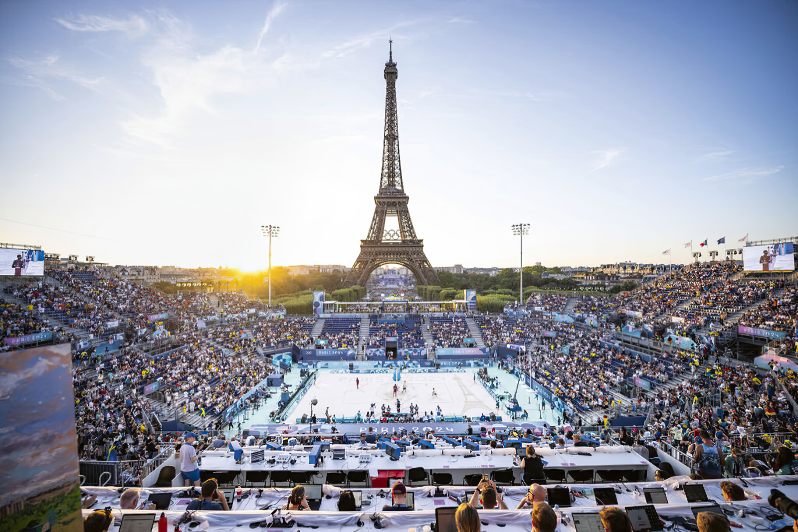 評審評語「世界四年一度的國際運動競技盛宴,2024年度之設計靈感源自舉辦國——巴黎街頭其標誌性的鵝卵石鋪面。模塊化且適應性十足的設計,巧妙塑造出國界多樣性,並以大膽的色彩配置增添趣味與活力,展現出會場歡愉的氛圍。」