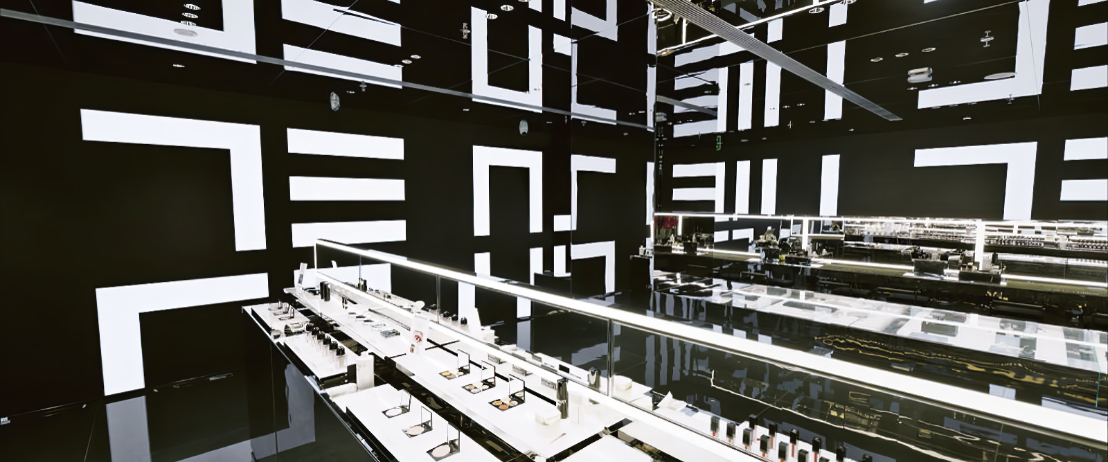 評審評語「基於設計師精心創造的幾何符號,與品牌中文名稱中的方格系統完美銜接。這一旗艦店面中的地板、天花板、展示架與商品皆採鏡面設計,並在LED屏幕上顯示多重映射的圖騰和品牌宣傳片,為顧客形成強烈且難以忘懷的視覺效果。」