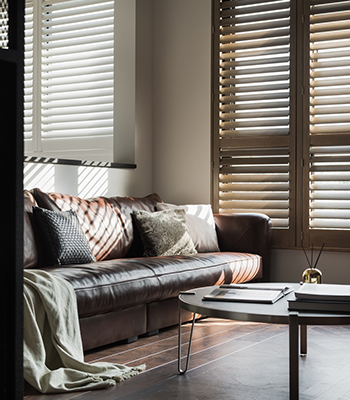 由於男主人有收藏黑膠唱片的興趣,且對藝術有一定的堅持,因此在客廳部分,除了在電視牆設置黑膠唱片的展示櫃以外,更漆上獨特紋理的仿飾漆,增添個性感;而地坪也鋪設拼花木地板,讓深木色的客廳不僅展現工業風的瀟灑,同時也顯示男主人的藝術氣息。越過沙發背牆,同時成為床頭矮牆,開放式空間由此圓融地過渡至新古典風格,換上白淨優雅的外衣,成為女主人喜愛的新古典臥房。兩種看似鮮明且衝突的風格,以深淺相對的木百葉、木地板存於同一空間,在同樣的日光篩灑下,卻有著互不干擾的和諧,毫不刻意地將男女主人所愛,融合為17坪的藝術宅邸。”